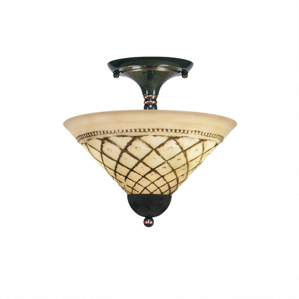 Toltec Lighting 120-BC-7182 Semi-Flush, 2-Bulbs, Shown In Black Copper Finish With 12 Chocolate Icing Glass
