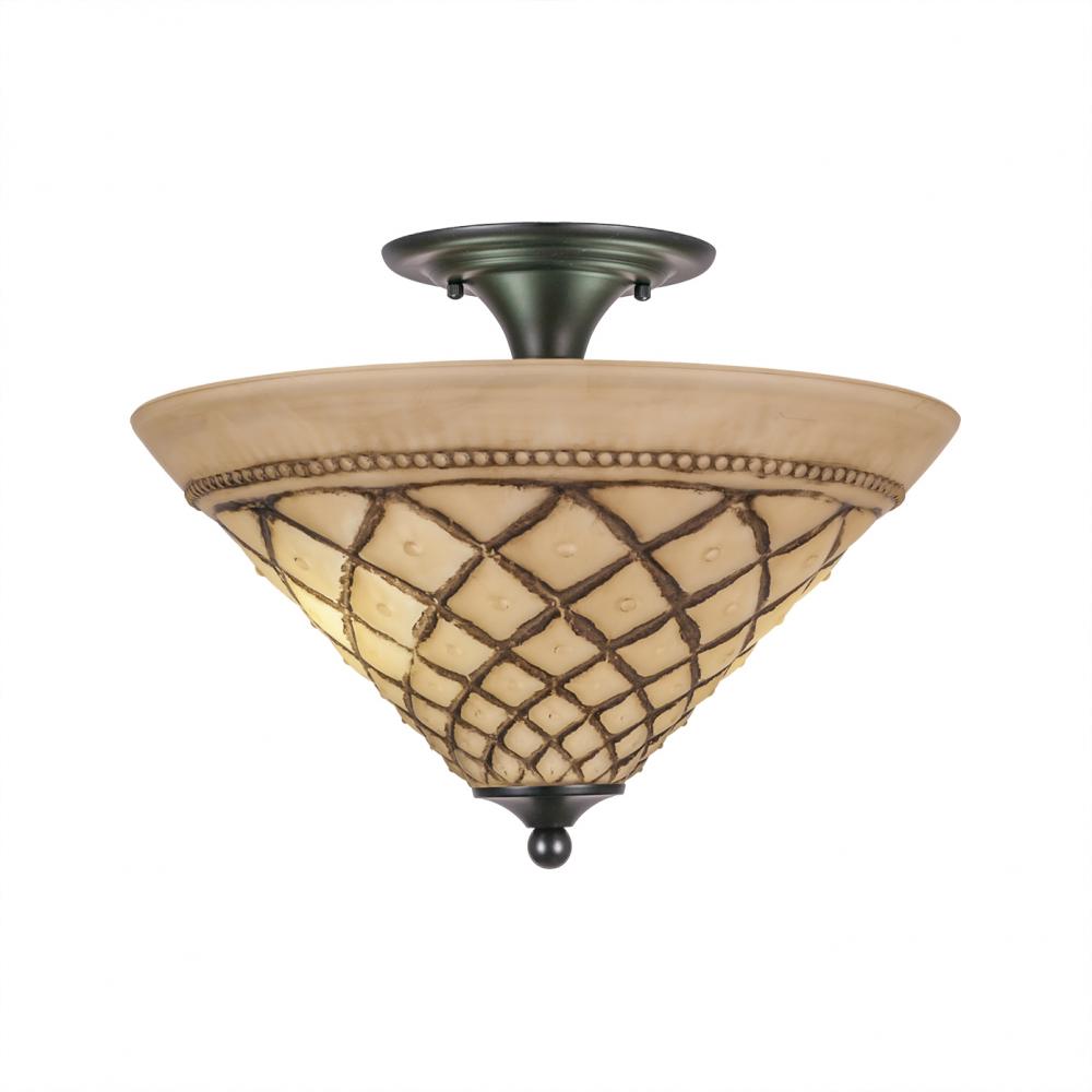 Toltec Lighting 121-MB-718 Semi-Flush, 2-Bulbs, Shown In Matte Black Finish With 16 Chocolate Icing Glass