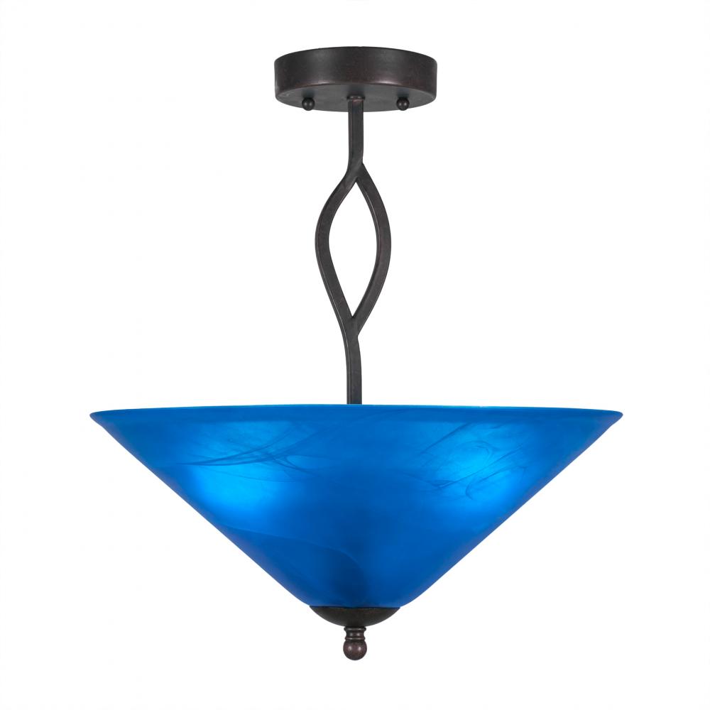 Toltec Lighting 242-DG-415 Revo Semi-Flush, 3-Bulbs, Shown In Dark Granite Finish With 16 Blue Italian Glass