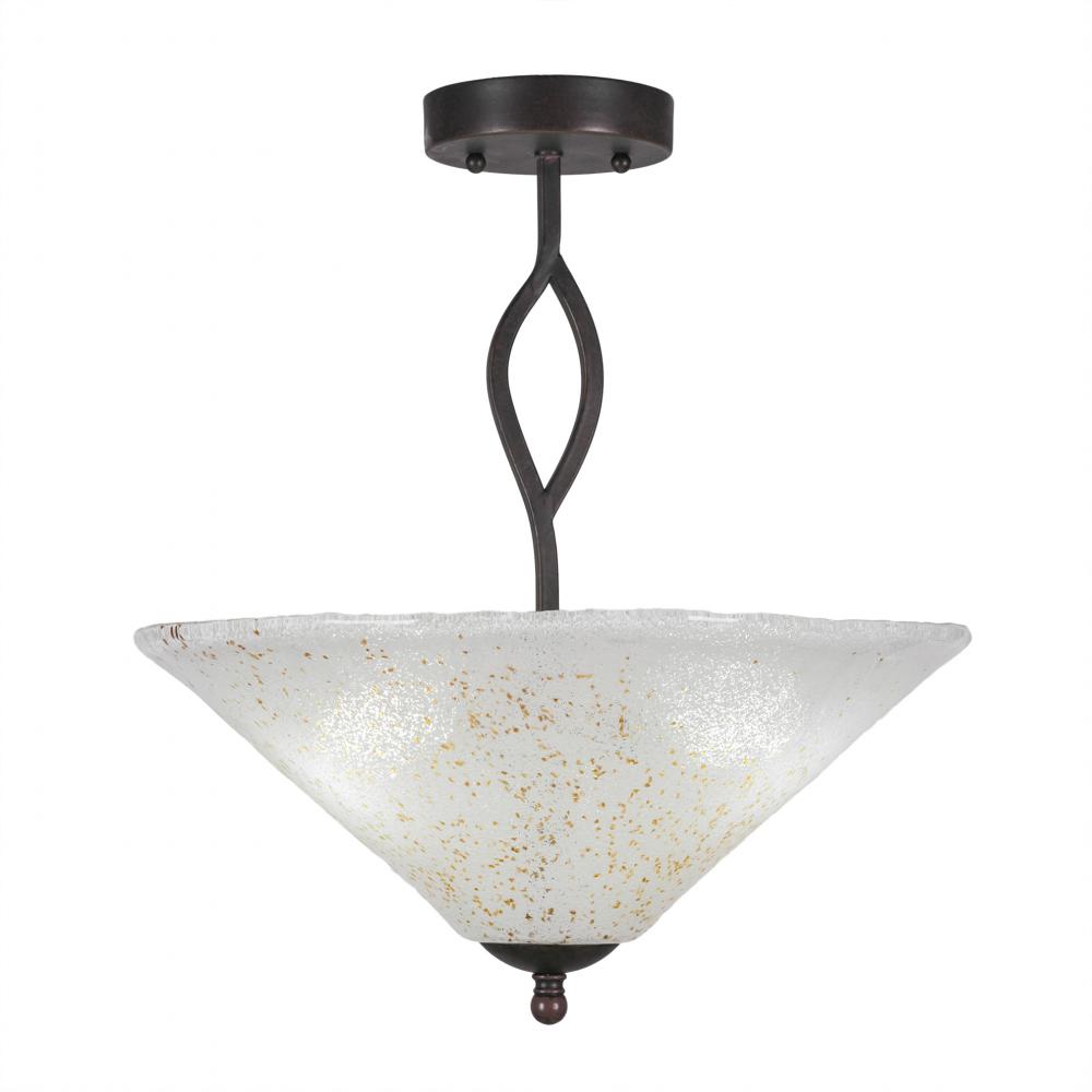 Toltec Lighting 242-DG-714 Revo Semi-Flush, 3-Bulbs, Shown In Dark Granite Finish With 16 Gold Ice Glass