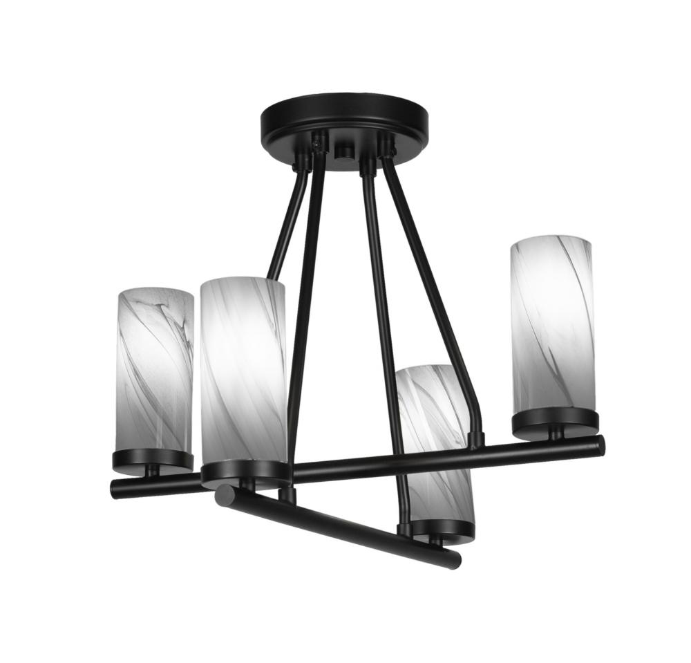 Toltec Lighting 2807-MB-802B Trinity 4 Light Semi-Flush Shown In Matte Black Finish With 2.5? Onyx Swirl Glass
