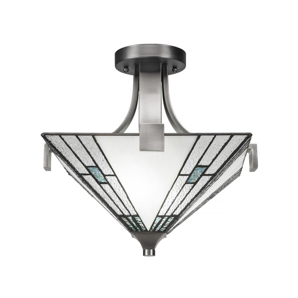 Toltec Lighting 579-GP-9532 Apollo Semi-Flush, 2-Bulbs, Shown In Graphite Finish With 14 Square Sky Ice Art Glass