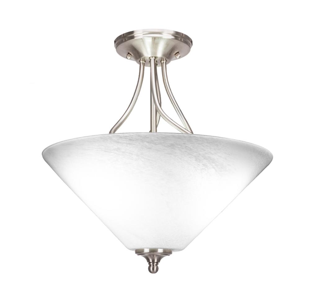 Toltec Lighting 909-BN-2161 Capri Semi-Flush, 3-Bulbs, Shown In Brushed Nickel Finish With 16 White Marble Glass