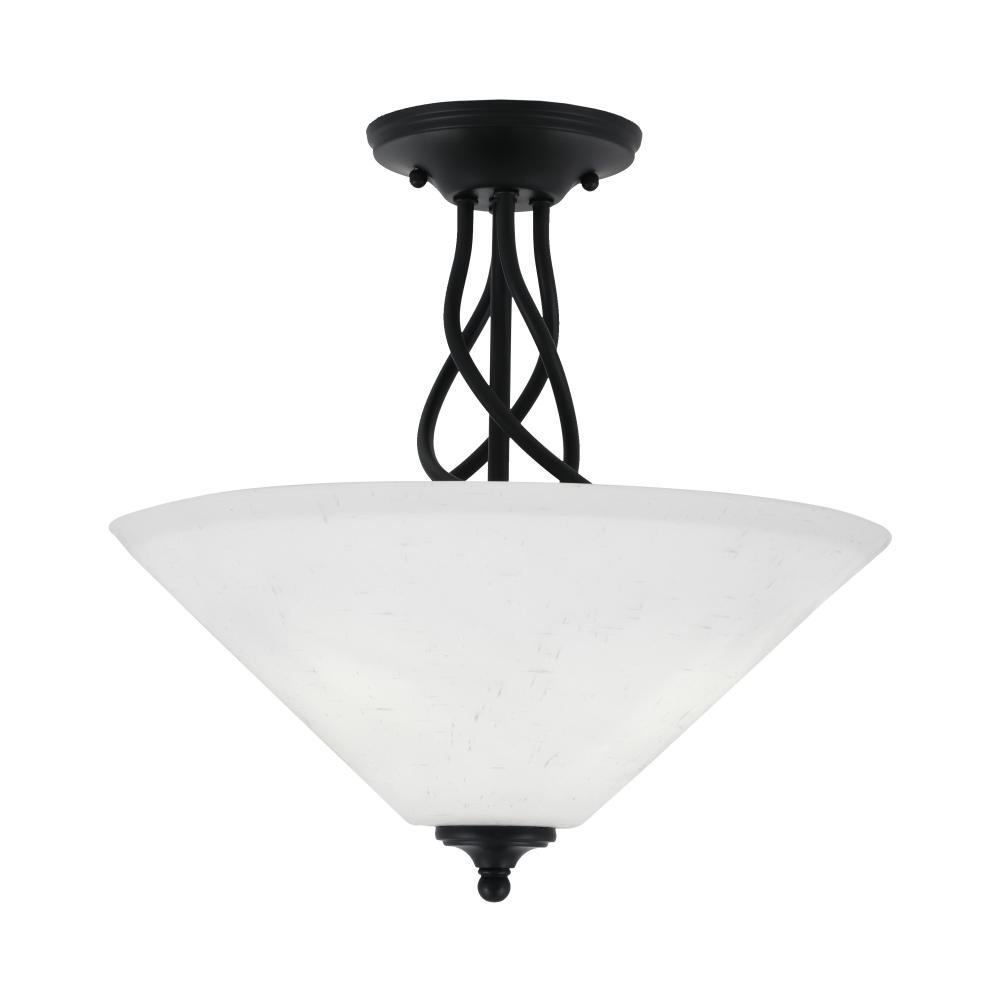 Toltec Lighting 909-MB-318 Capri Semi-Flush, 3-Bulbs, Shown In Matte Black Finish With 16 White Muslin Glass
