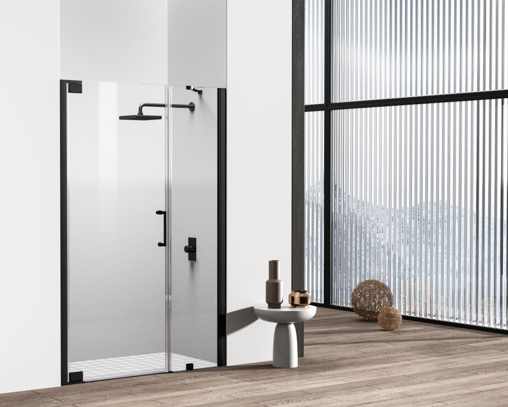 Elegant SD404-4872MBK - Semi-frameless hinged shower door 48 x 72 Matte Black