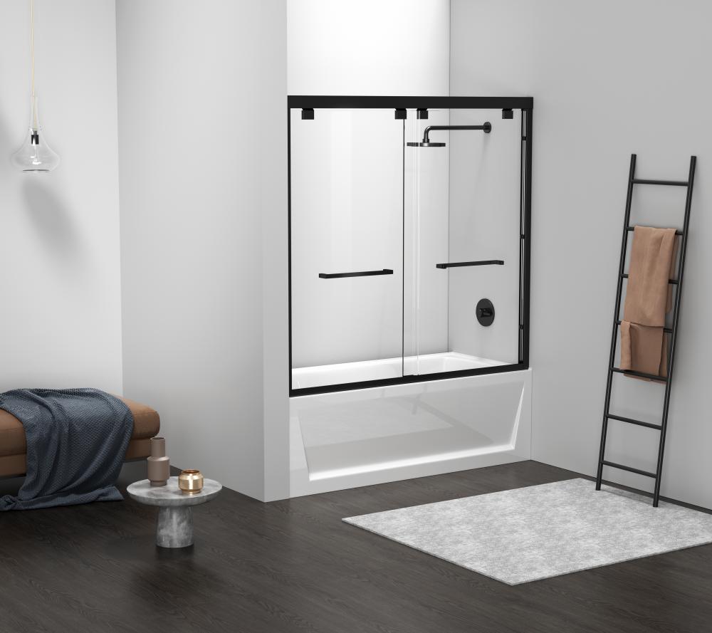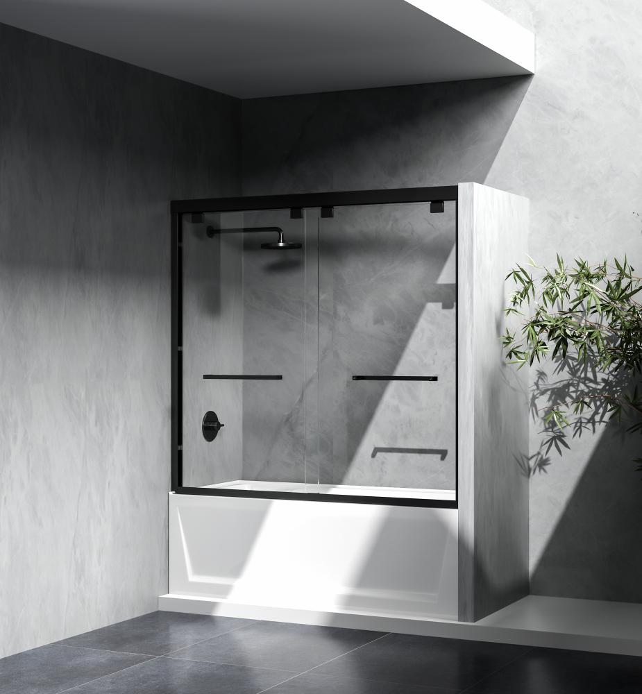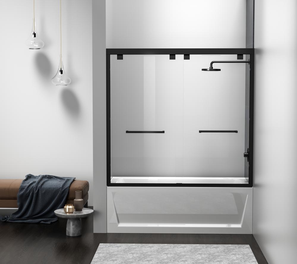 Transform your bathroom into a luxurious oasis with our stunning modern shower tub doors! Our doors are designed to offer both functionality and style, making your shower experience more enjoyable and comfortable. Crafted from high quality materials, our shower tub doors are not only durable but also easy to maintain, making them a practical and long lasting additional to any bathroom. We have four finishes available to choose from to help complement your bathroom décor and aesthetics. Semi-frameless double sliding tub door with 56" - 60" width adjustment range, cut the rails to size. Full length shower door seal thresholds are included to prevent any leaks. Anti-jump mechanism included to ensure safe and smooth door operation.
