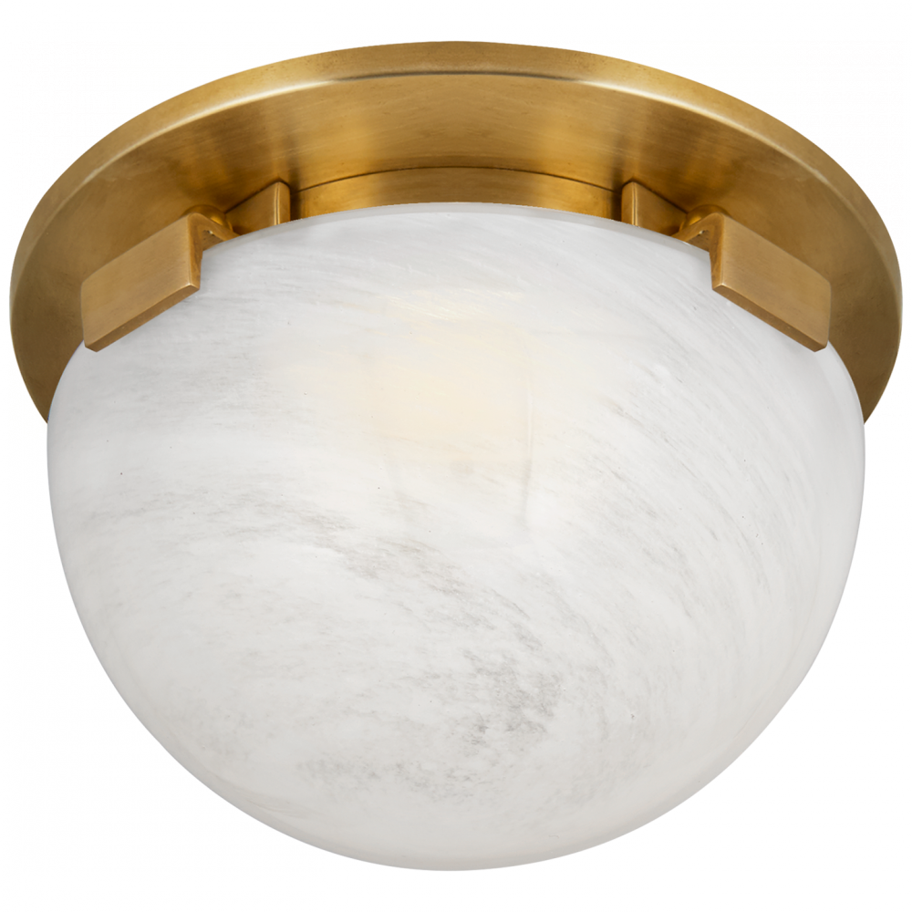Serein 5.5" Solitaire Flush Mount in Hand-Rubbed Antique Brass with White Strie Glass