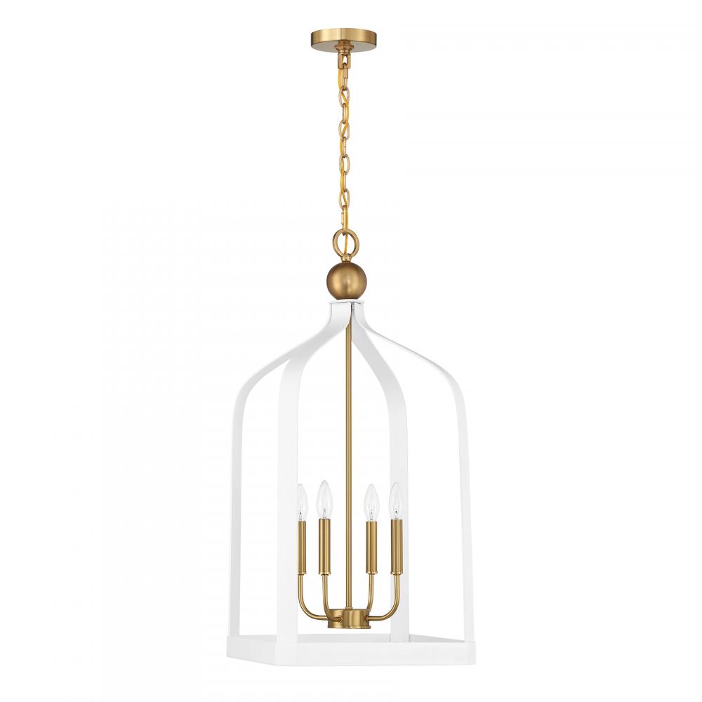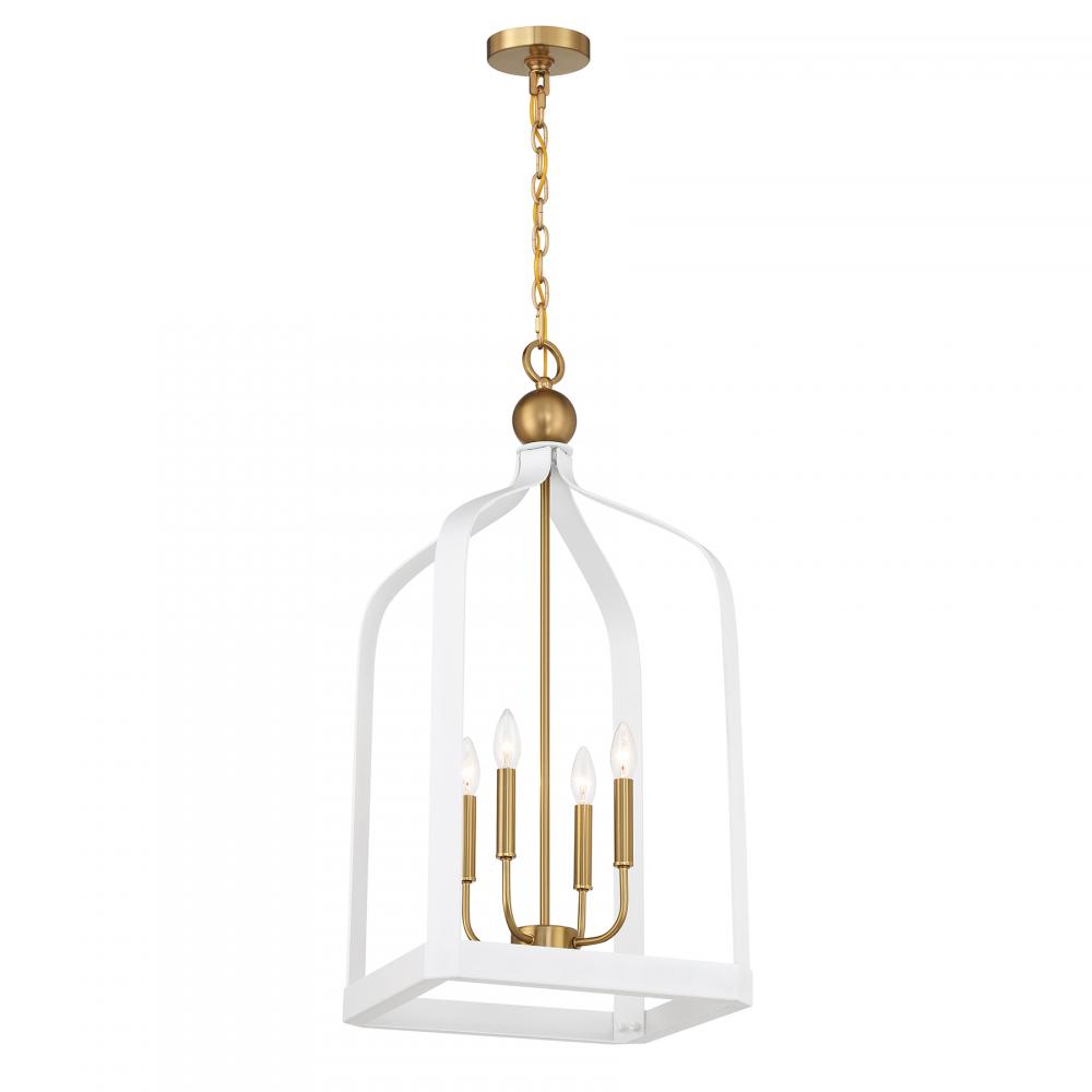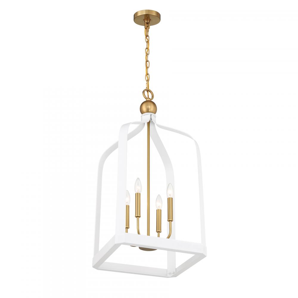 Sheffield 4-Light Pendant in White with Warm Brass Accents