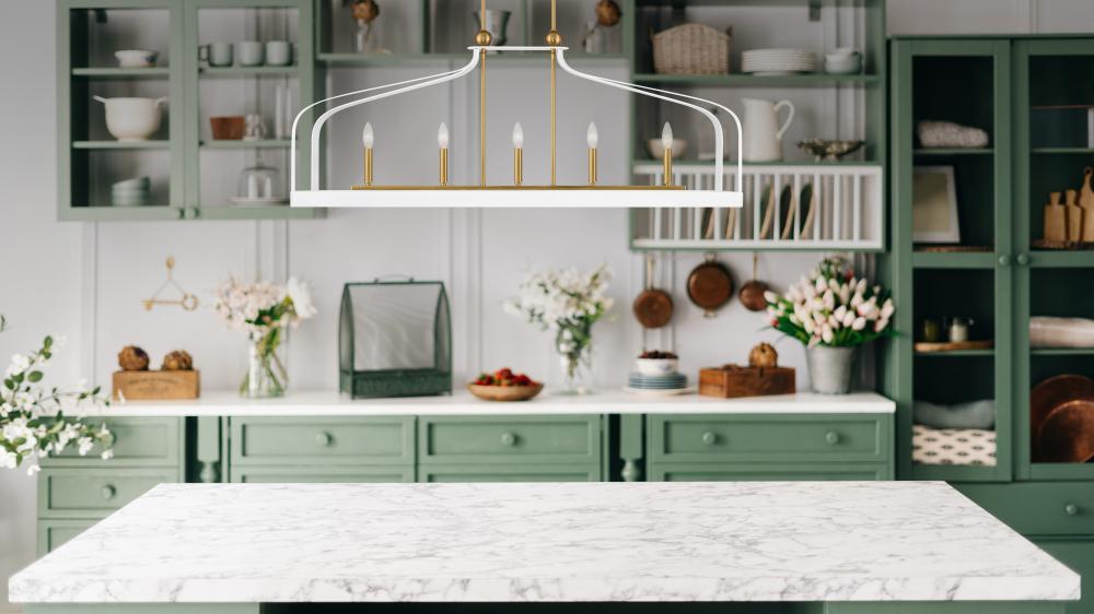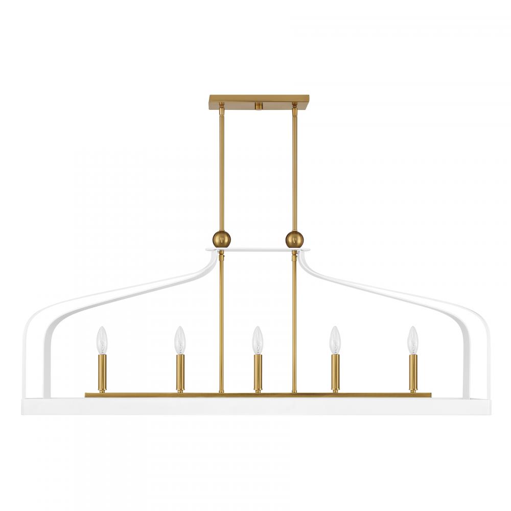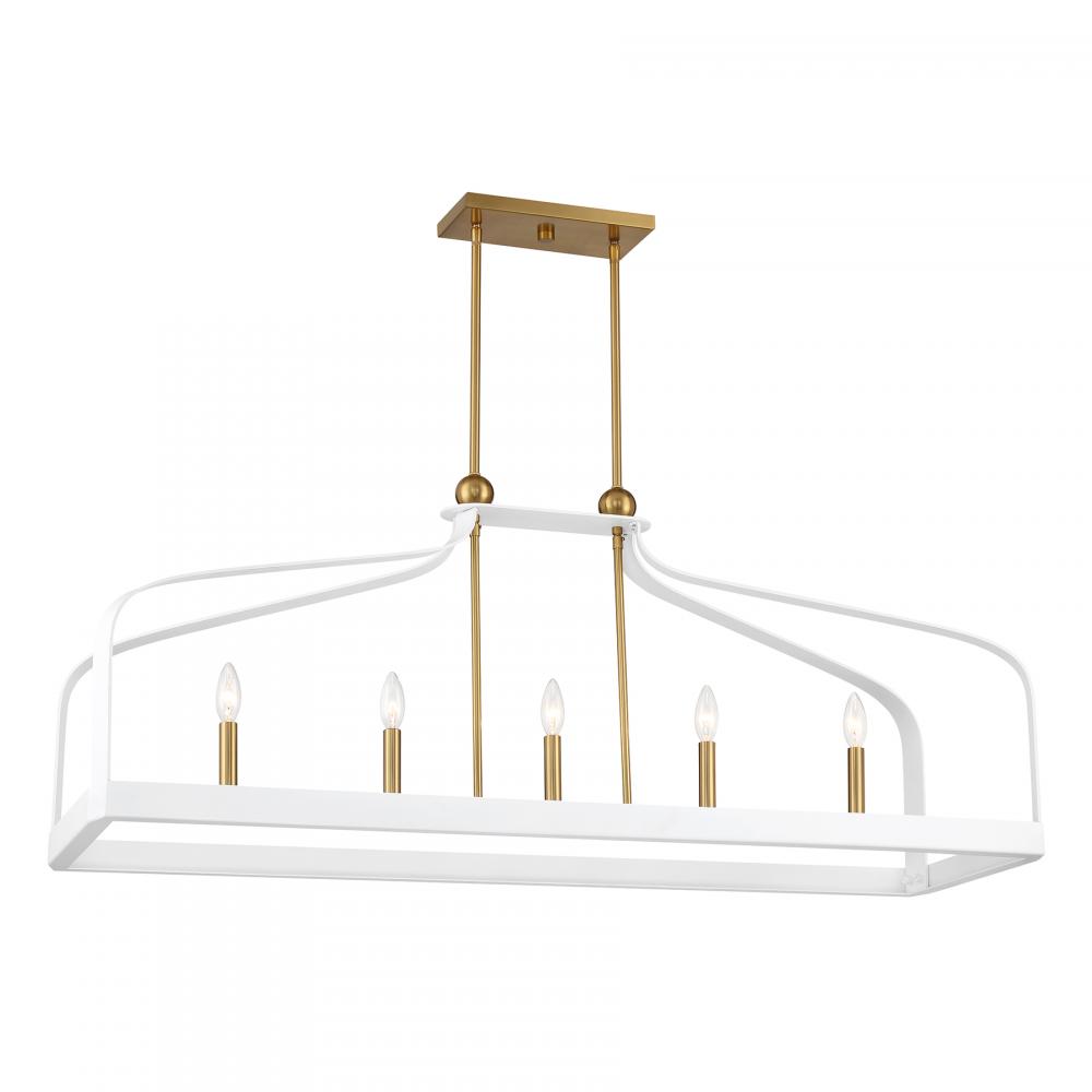 Sheffield 5-Light Linear Chandelier in White with Warm Brass Accents