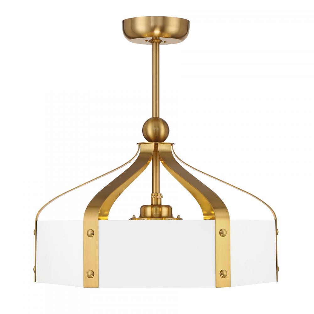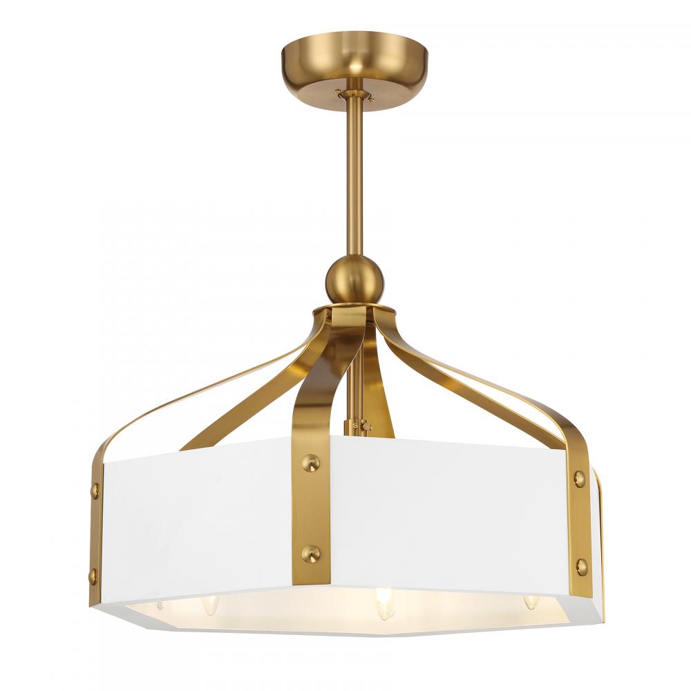 Sheffield 4-Light Pendant in White with Warm Brass Accents