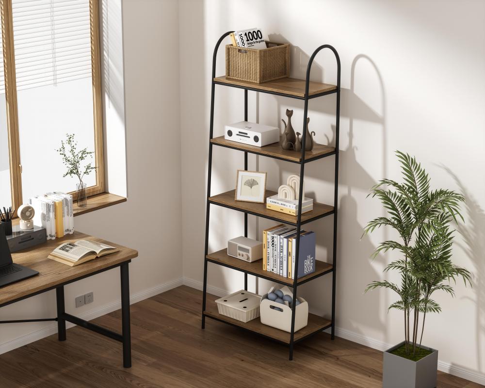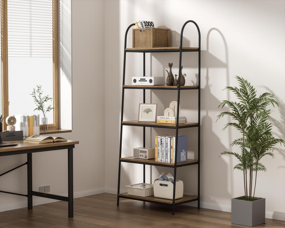 Five generously sized shelves provide plenty of room for everything from decorative items to practical storage bins.