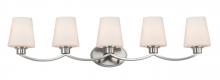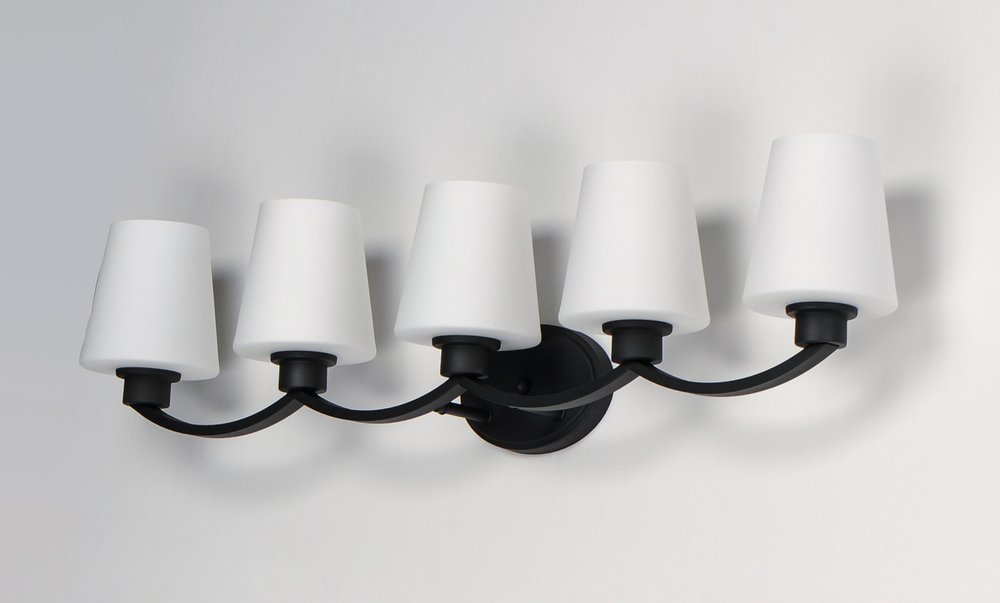 Graceful arcs of rectangular tubing transition to round cups that support tapered Satin White glass shades creating a crisp and clean transitional design. The frame is finished in your choice of Satin Nickel or Black which bridges modern and transitional d