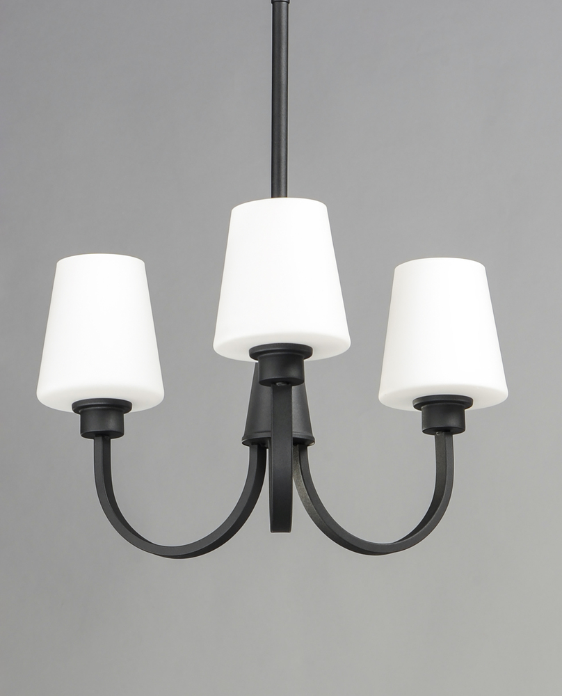 Graceful arcs of rectangular tubing transition to round cups that support tapered Satin White glass shades creating a crisp and clean transitional design. The frame is finished in your choice of Satin Nickel or Black which bridges modern and transitional d
