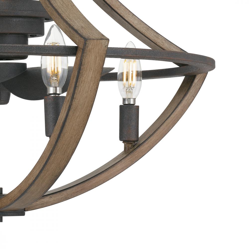 Though crafted from steel, the Shire fandelier features an enchanting design that mimics the look and patina of wood amid a rustic black finish. With its diamond-like shape and interior fan, Shire is a union of form and function, providing refreshing air w