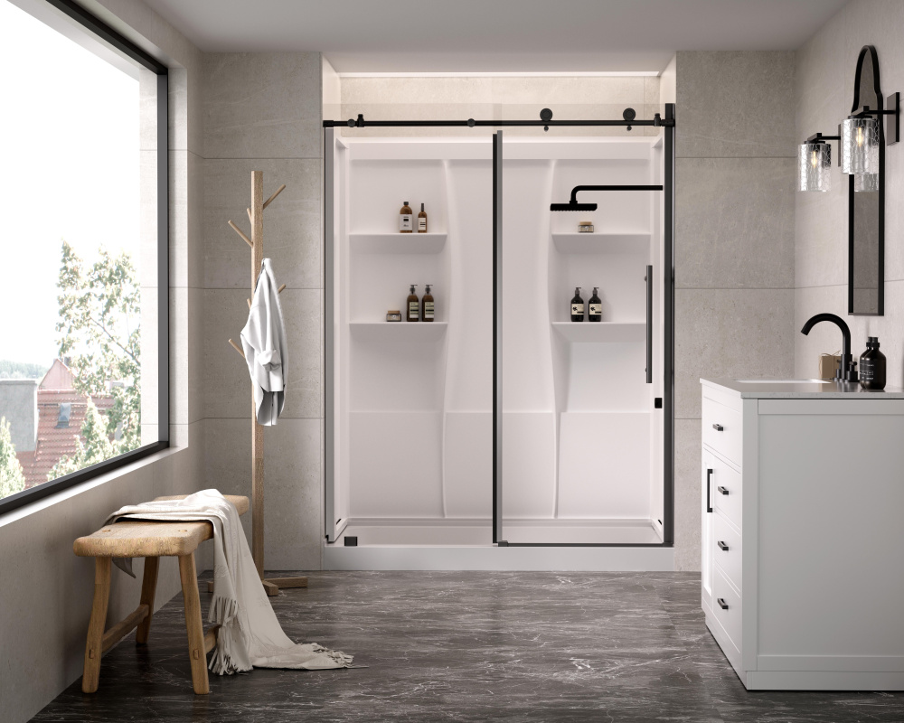 Upgrade your shower space with a sleek, functional, and easy-to-install three-piece acrylic shower wall surround that blends modern design with practical convenience. Featuring four built-in shelves, this surround ensures you always have space to keep shampoos, soaps, and essentials neatly stored. Designed for hassle-free installation, this unit features a direct-to-stud mounting system with built-in nailing flanges, ensuring a secure and lasting connection to the wall. The caulkless construction reduces the risk of leaks, providing peace of mind and long-term durability. With a bright white, high-gloss acrylic finish, this shower surround offers a modern, polished look that resists stains and is incredibly easy to clean. Unlike fiberglass-backed alternatives, the smooth, lightweight material is easy to handle and install without irritation. Whether you’re completing a full renovation or a quick upgrade, this shower surround effortlessly enhances the functionality and aesthetic of any bathroom spac