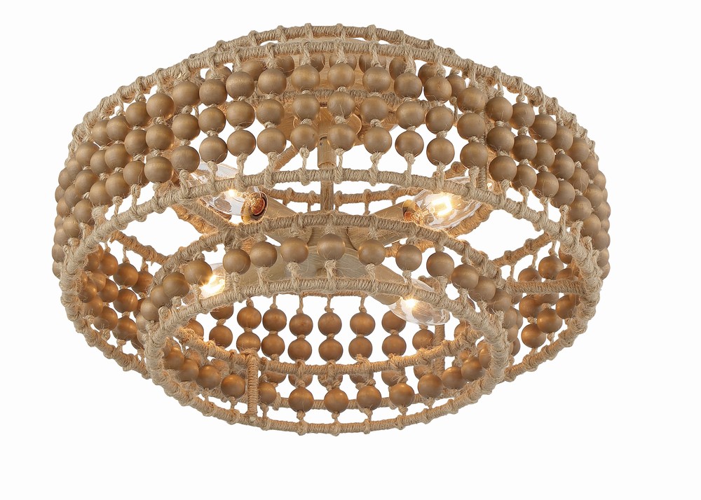 The Silas interlaces natural wood beads with jute rows, bringing an organic element to its environment. A series of beads are strung together, taking on a handmade aesthetic that creates an inviting and casual style to a room.