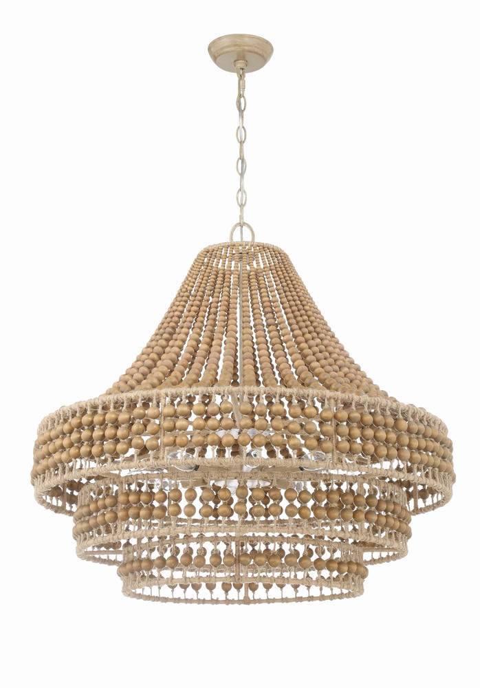The Silas interlaces natural wood beads with jute rows, bringing an organic element to its environment. A series of beads are strung together, taking on a handmade aesthetic that creates an inviting and casual style to a room.