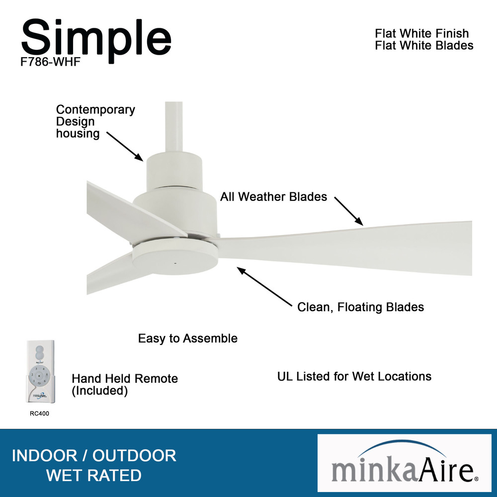 Minka-Aire F786-WHF - Simple - 44" Ceiling Fan
