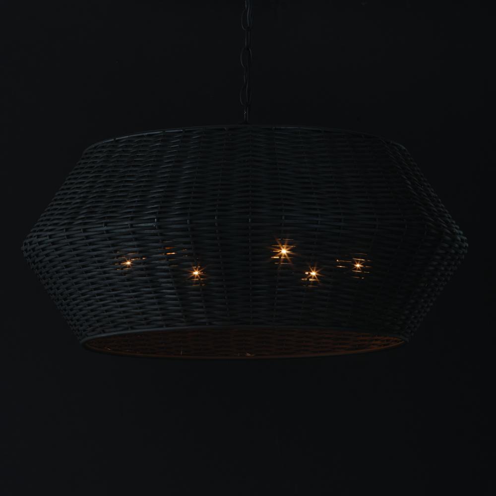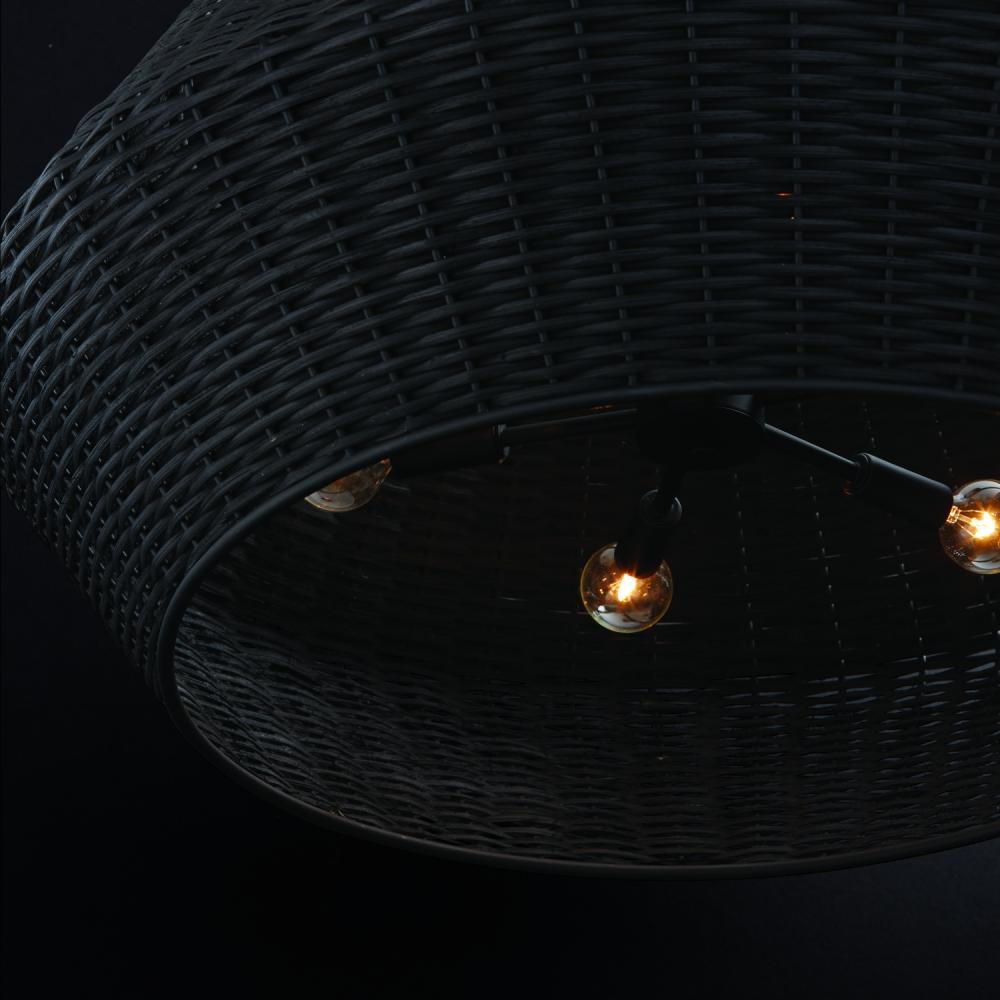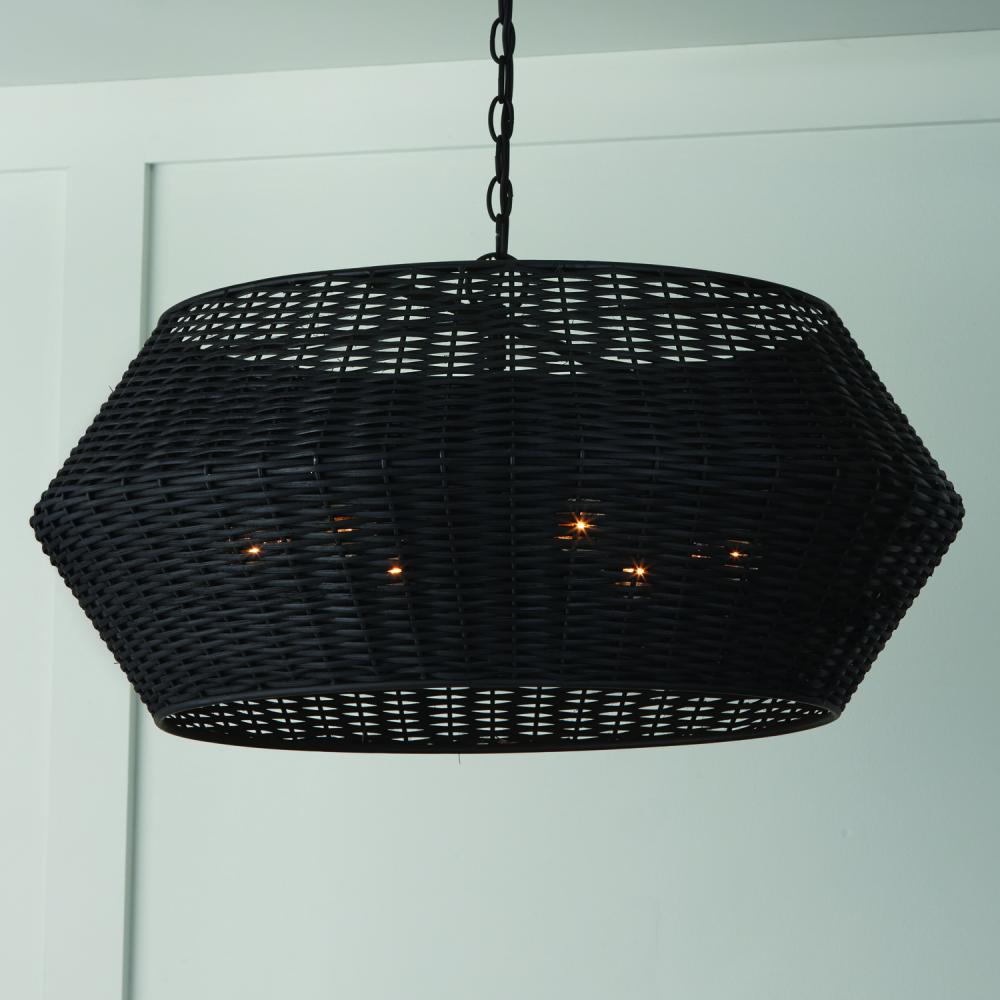 29.5"W x 14.75"H 6-Light Pendant in Matte Black with Hand-Woven Painted Rattan