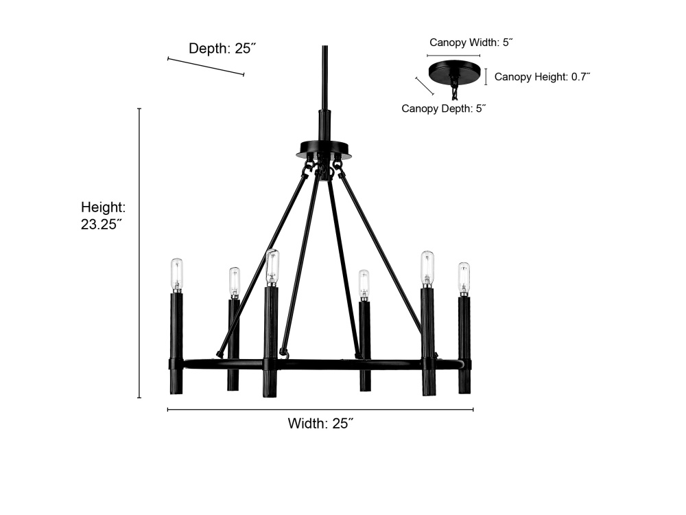 Skyva 24.25" Wide 6-Light Chandelier - Matte Black