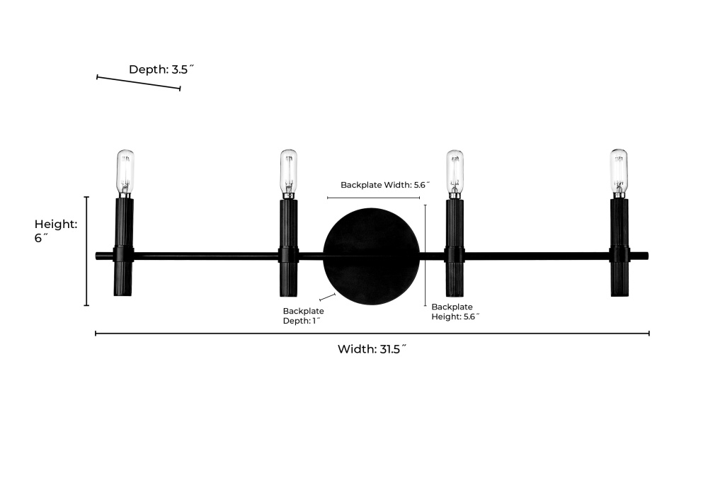 Millennium 25604-MB - Skyva 6" High 4-Light Vanity - Matte Black