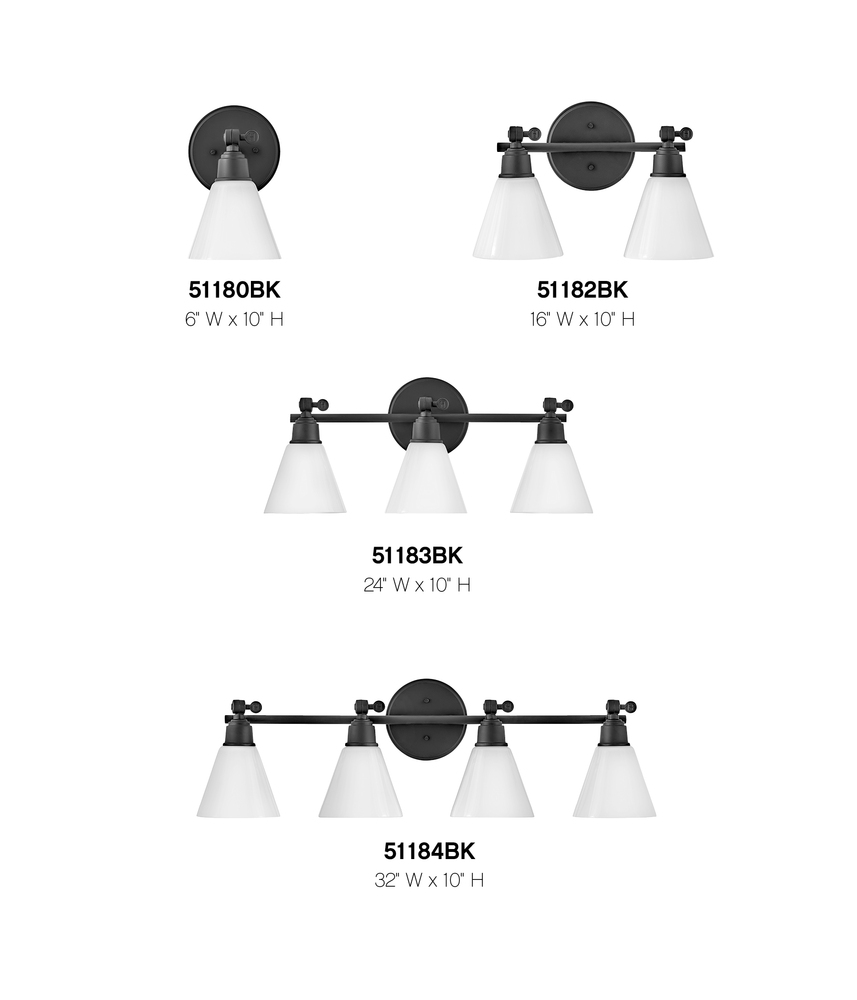 Hinkley 51184BK - Large Adjustable Four Light Vanity
