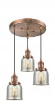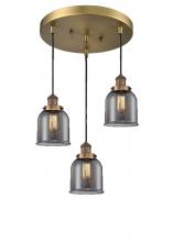 Bell - 3 Light 11" Multi-Pendant - Incandescent Bulb - Antique Copper Finish - Plated Smoke Shade