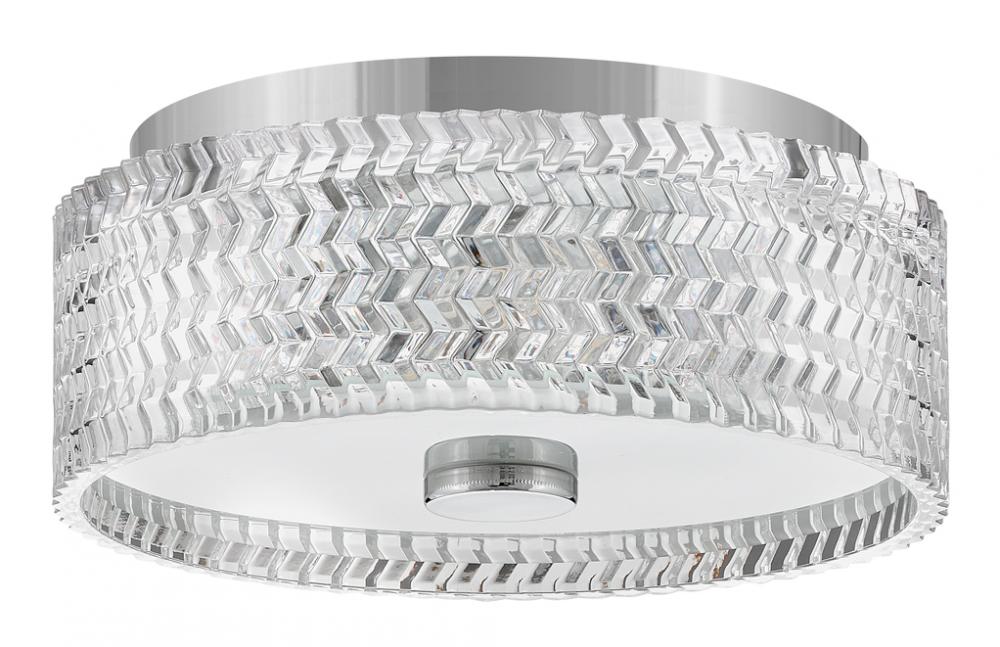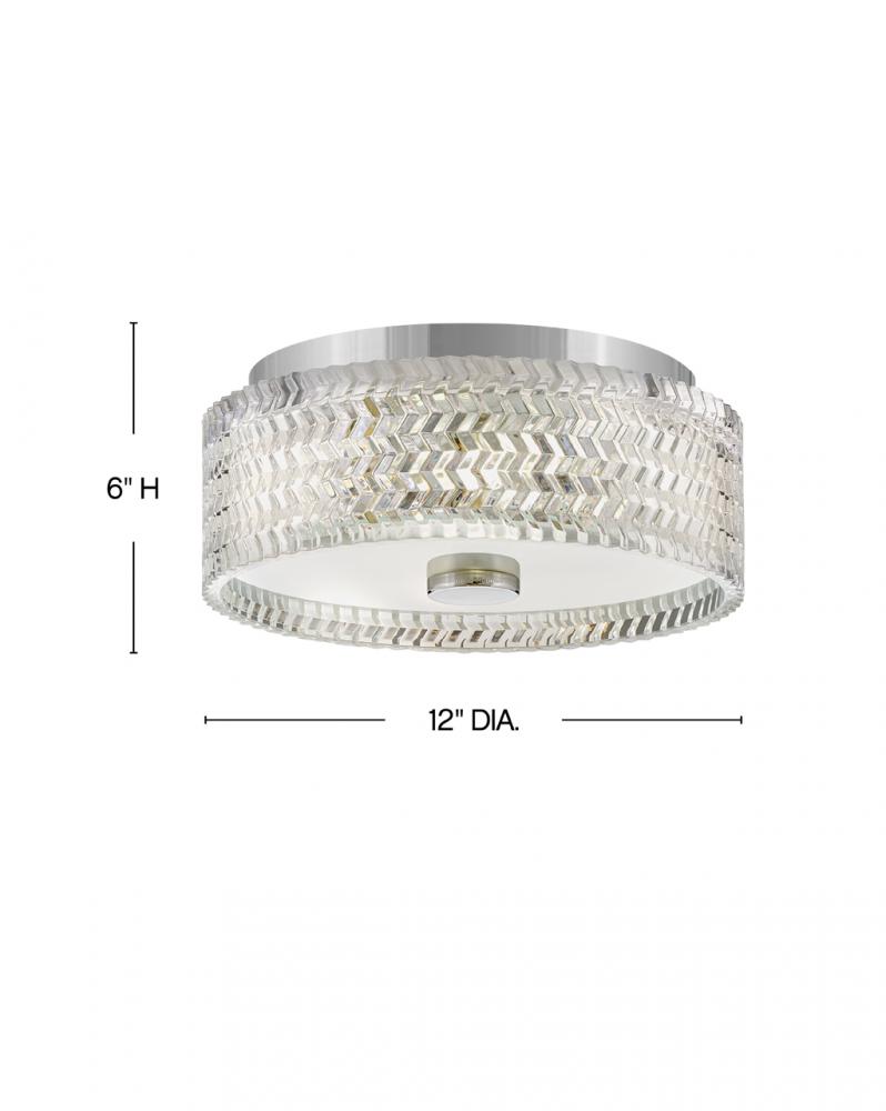 Traditional elegance with a modern edge defines Elle’s graceful design. Rich chevron cut glass provides interesting light refraction and is a dramatic focal point whether the light is on or off. The gleaming metal finish adds to the glam design that gives a touch of radiance to any space.