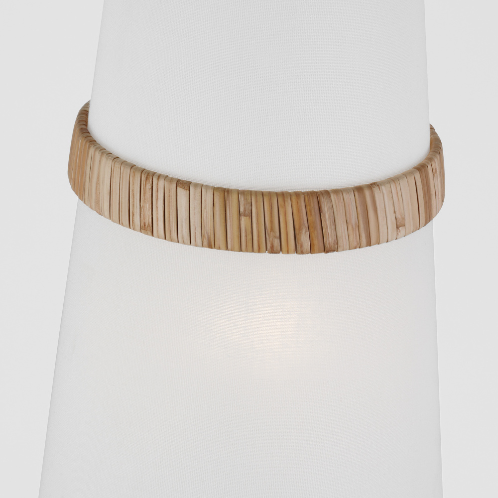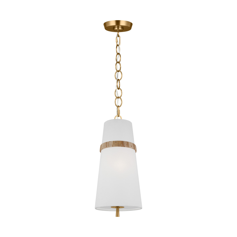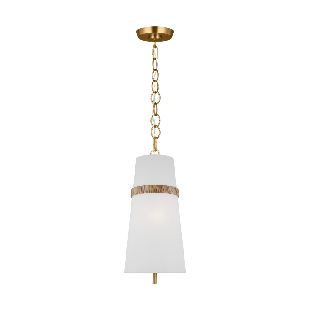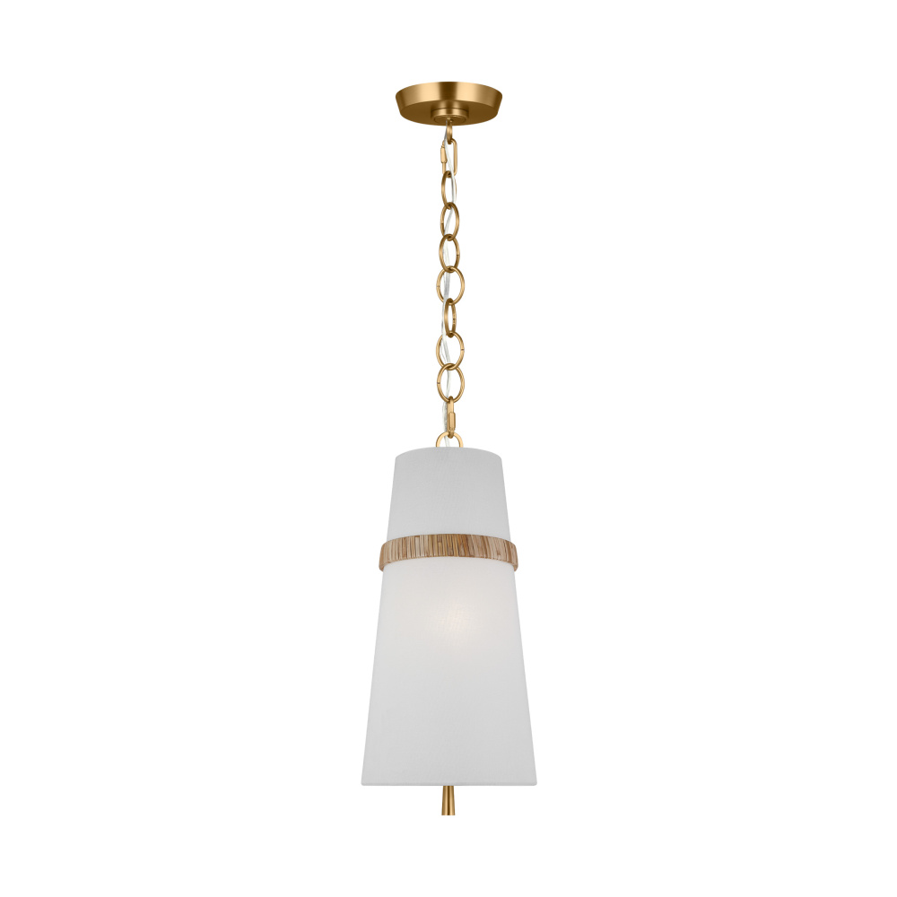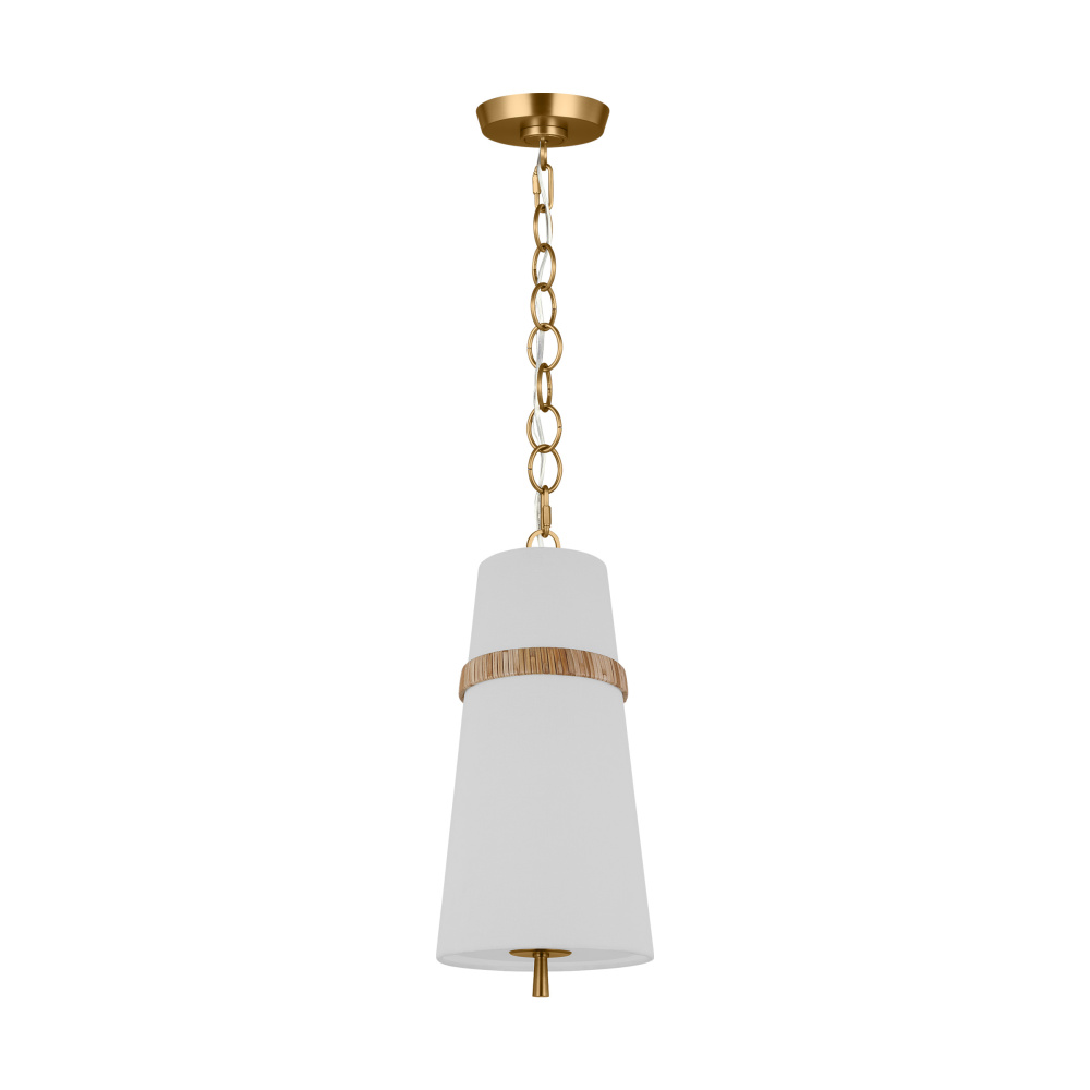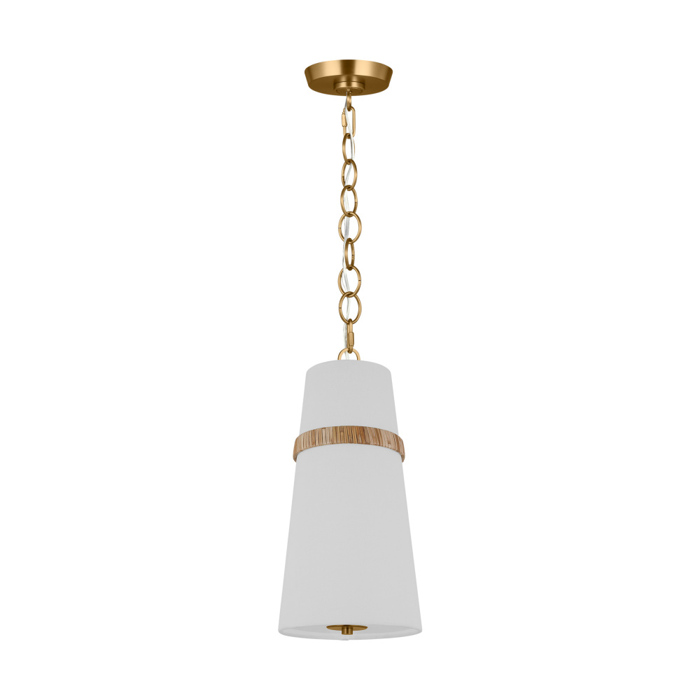 The Cordtlandt series by Alexa Hampton has a simple, purposeful design that makes it a perfect addition to any uptown chic décor. The cylinder-shaped pendant features etched glass diffuser, an over-scaled chain and a decorative end stem that ties the look together. Updated with a rattan woven ring detail elevates the design with a coastal vibe.