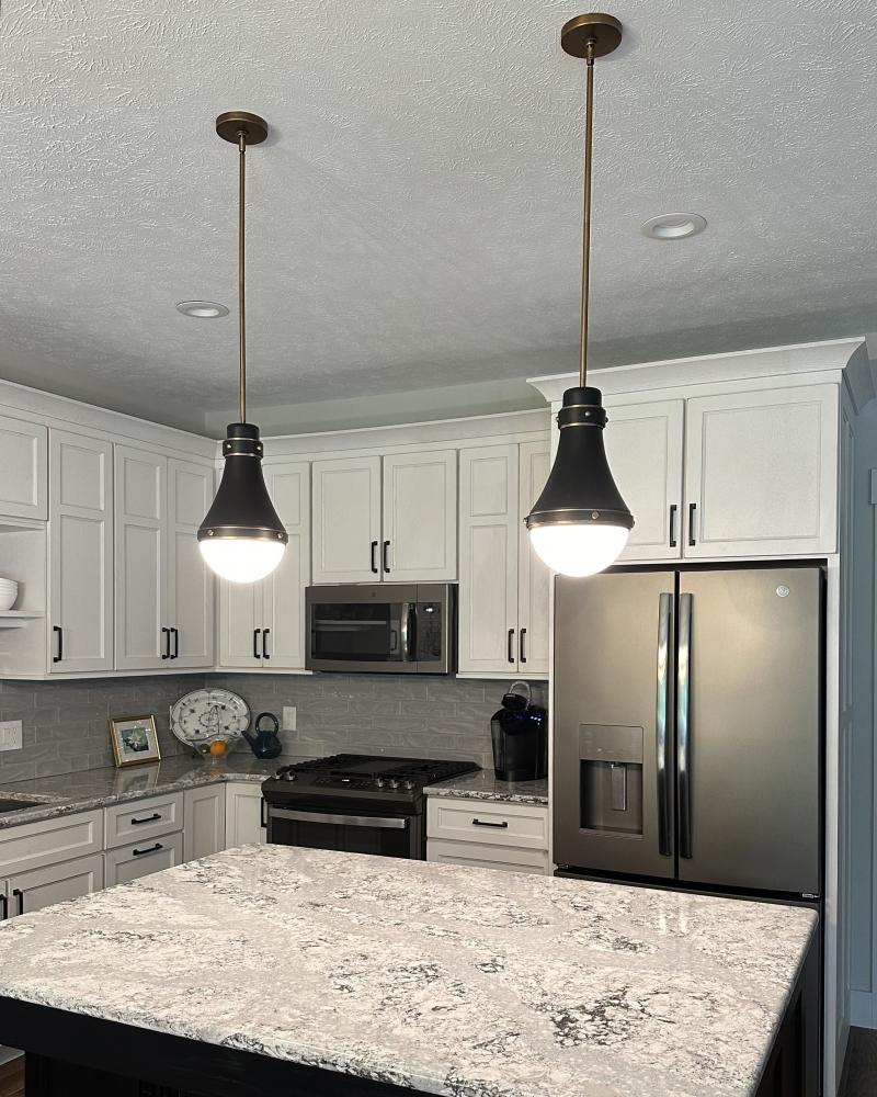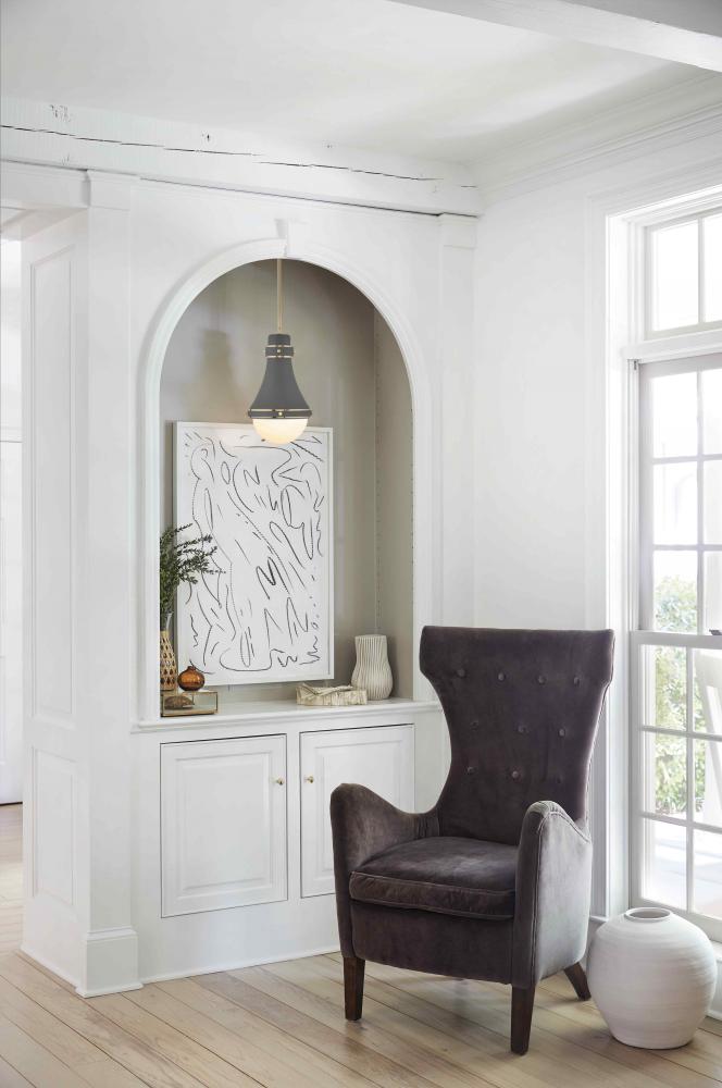 Oliver features an eye-catching sleek spun metal shade and etched opal glass shade beneath. Sleek metal bands and knobs add interest and reinforce its modern-meets-traditional style. Oliver is available in a robust lineup of finish combinations.