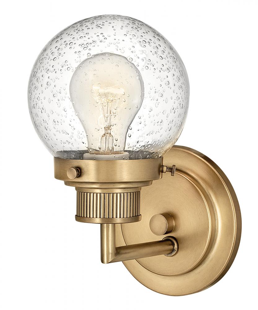Poppy features clear glass spheres that bubble out of the refined, ribbed Chrome or Heritage Brass fitters to create a simple, yet sophisticated silhouette. An elegant, stepped backplate and crisp crossbar anchor this airy design. Poppy showcases mid-century style with a spectacular spin.