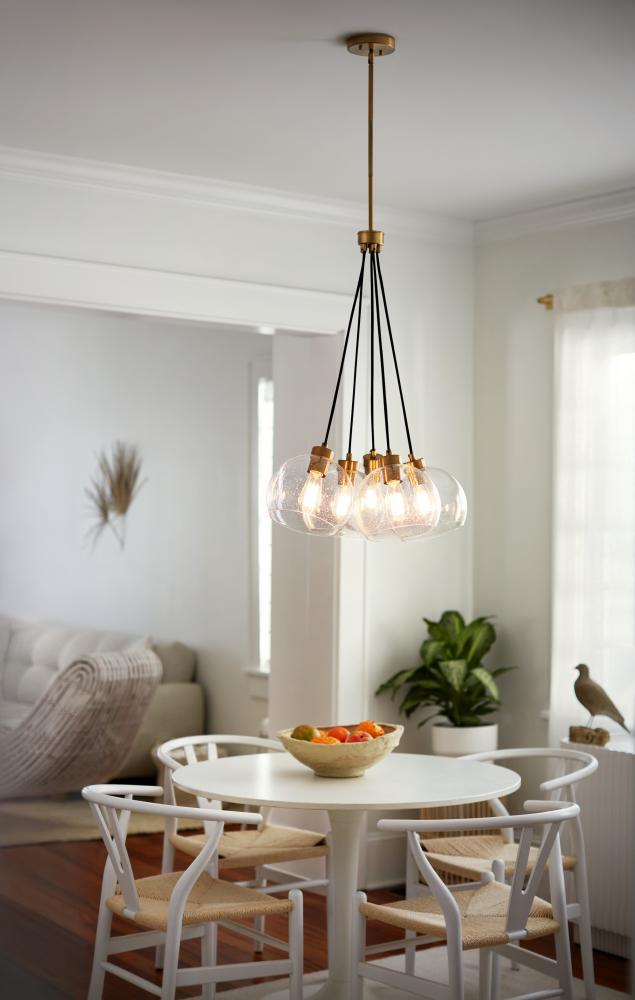 Your room will get rave reviews thanks to Rumi’s dynamic design. This modern, art-forward fixture captivates with clear seedy glass globes suspended from a sleek black cord. A Lacquered Brass finish is the flawless finishing touch. Design opportunities abound thanks to Rumi’s versatile options and adjustable height, adding a thrill to airy and cozy spaces alike.