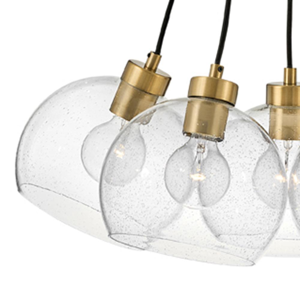 Your room will get rave reviews thanks to Rumi. This modern, art-forward fixture captivates with the chic fusion of clear seedy glass globes and a flawless Lacquered Brass finish. Design opportunities abound, with Rumi adding thrill to airy and cozy spaces alike.