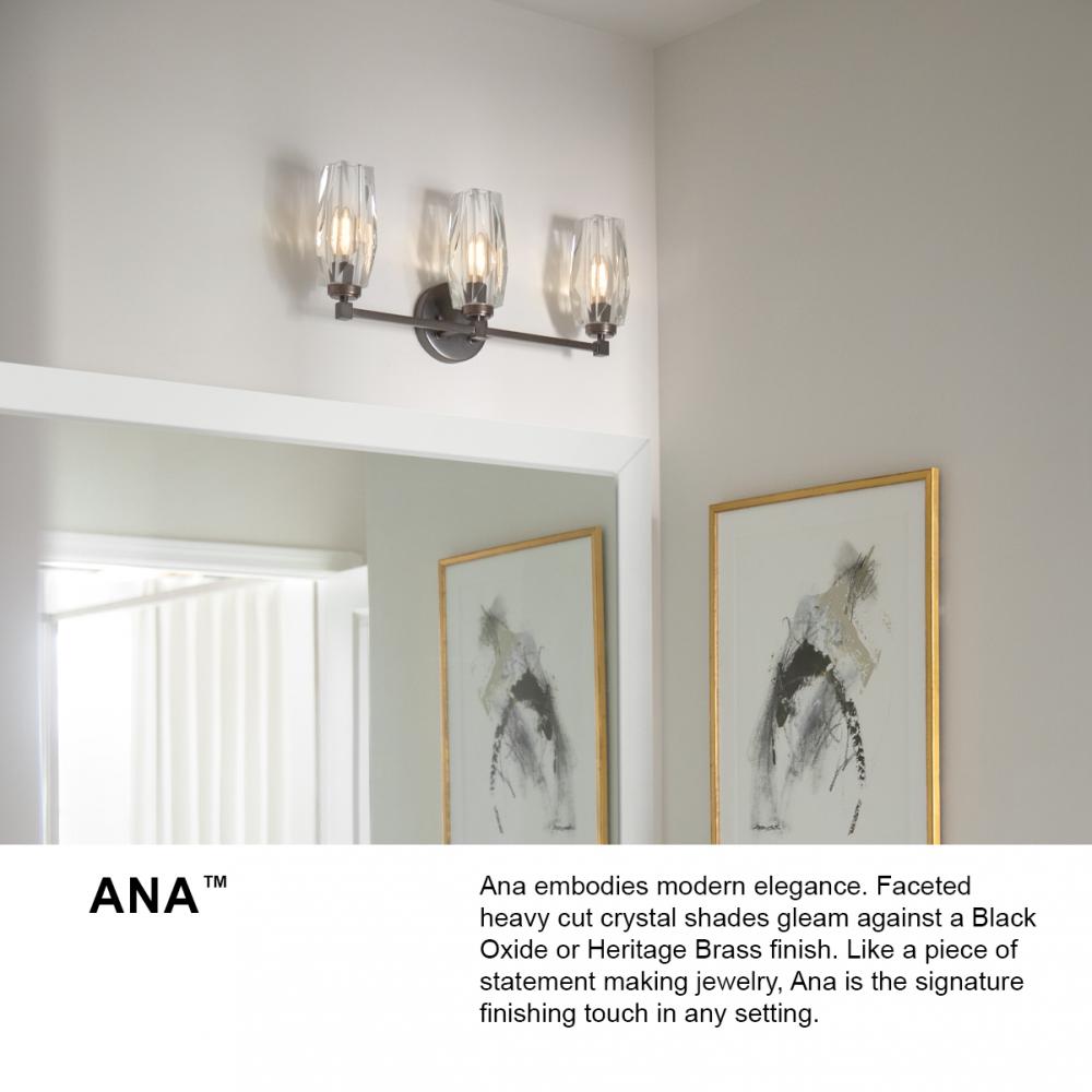 Ana embodies modern elegance. Faceted heavy-cut crystal gleams against a Black Oxide or Heritage Brass finish. Like a piece of statement-making jewelry, Ana is the signature finishing touch in any setting.