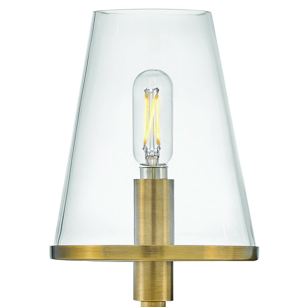Marten has a clean, crisp look that brings striking transitional elements to any décor style. Clear glass shades have a Heritage Brass rim, perfectly complementing the Black back plate to tie the aesthetic together. The clean lines provide the satisfaction of balanced symmetry while giving off ample light.