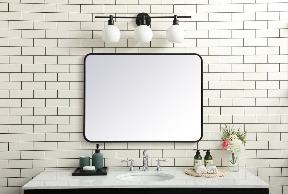 Elegant MR803640BK - Soft corner metal rectangular mirror 36x40 inch in Black
