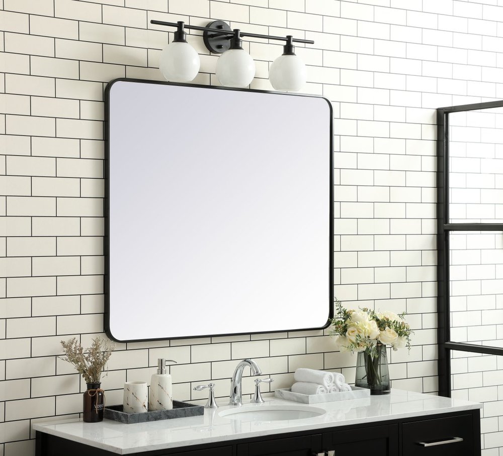 Elegant MR803636BK - Soft corner metal rectangular mirror 36x36 inch in Black
