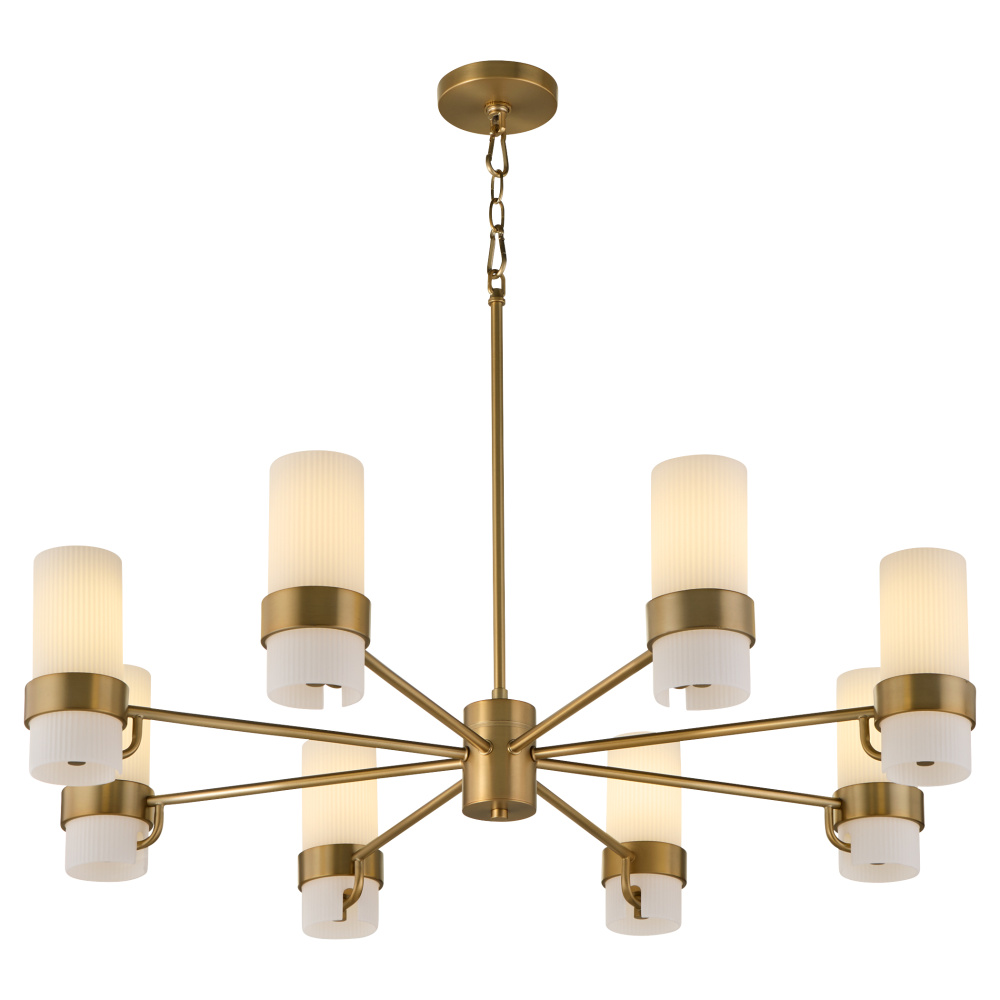 The Sojourn Series combines confident transitional design with subtle nods to the past. Featuring candle-like white milky glass pillars bisected by a modern bobeche, this fixture balances contemporary lines with a touch of nostalgia reminiscent of early gas fixtures. Finished in brushed brass, the Sojourn Series brings timeless elegance and versatility to modern and transitional spaces alike. Let the Sojourn Series transform your next project with its exceptional wall mounts, vanities, and chandeliers, each crafted to bring refined character to any space.