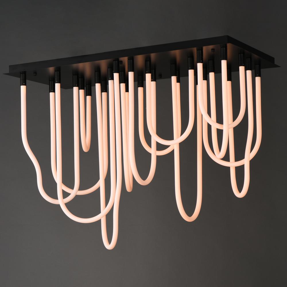 Sweeping matte white acrylic tubes encase an omnidirectional LED light source, arranged in abstract configurations inspired by solar flares. Minimal in composition yet dramatic in form, the Soleil collection offers a striking lighting solution. Available i