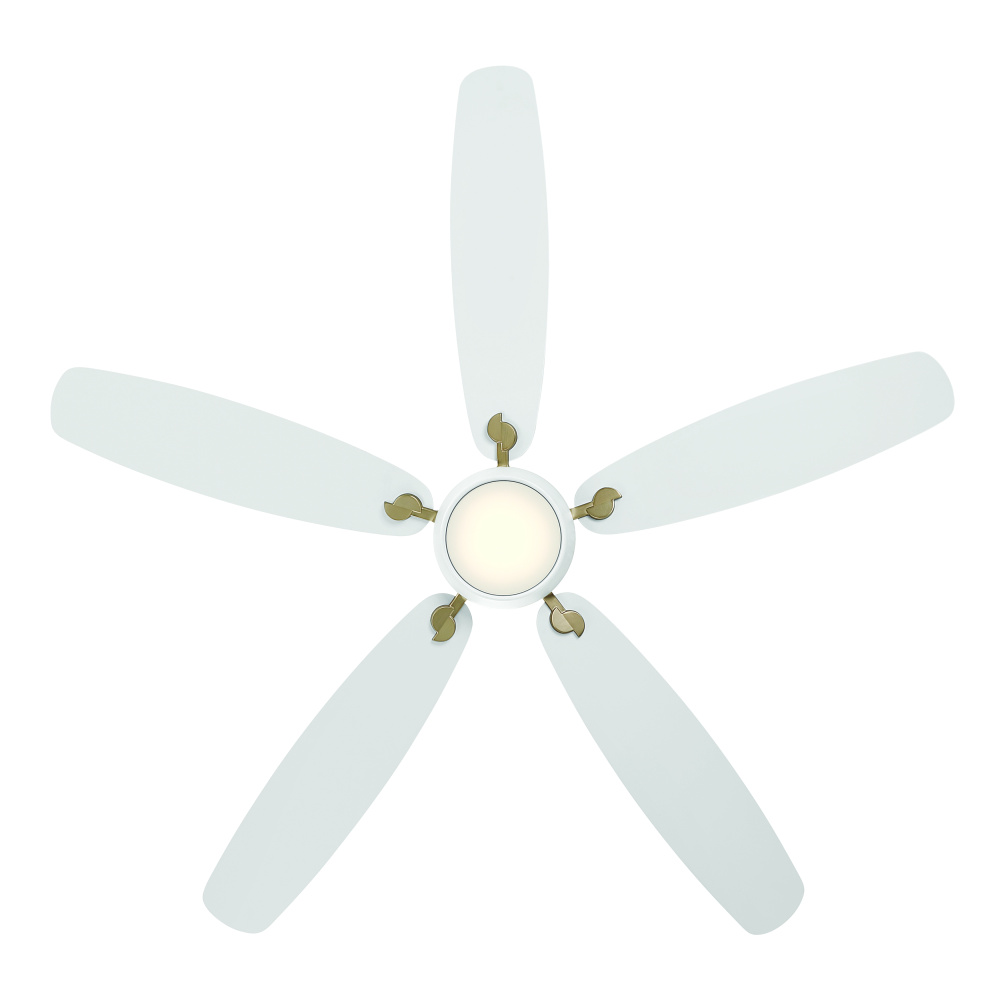 52" 5-Blade 5CCT LED Ceiling Fan - Alabaster White, Brushed Brass and Alabaster White Blades with Matte Lens