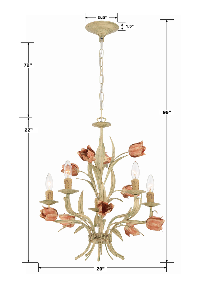 The Southport collection is evocative of vintage tole fixtures. The whimsical wrought iron fixture features decorative hand painted flowers. Bring the beauty of nature into your dining room, entryway, or any other space which needs a bit of graceful floral accent.