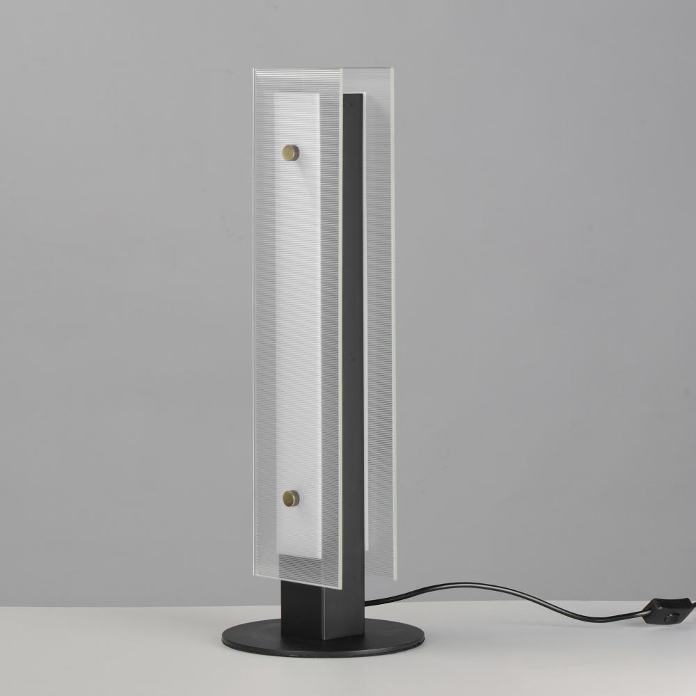 Panes of clear ribbed glass are secured with oversized knurled Natural Aged Brass pins on a Matte Black frame. Obscured by the glass texture, the integrated LED is not only soft on the eyes but also provides an abundance of illumination. Varied configurati