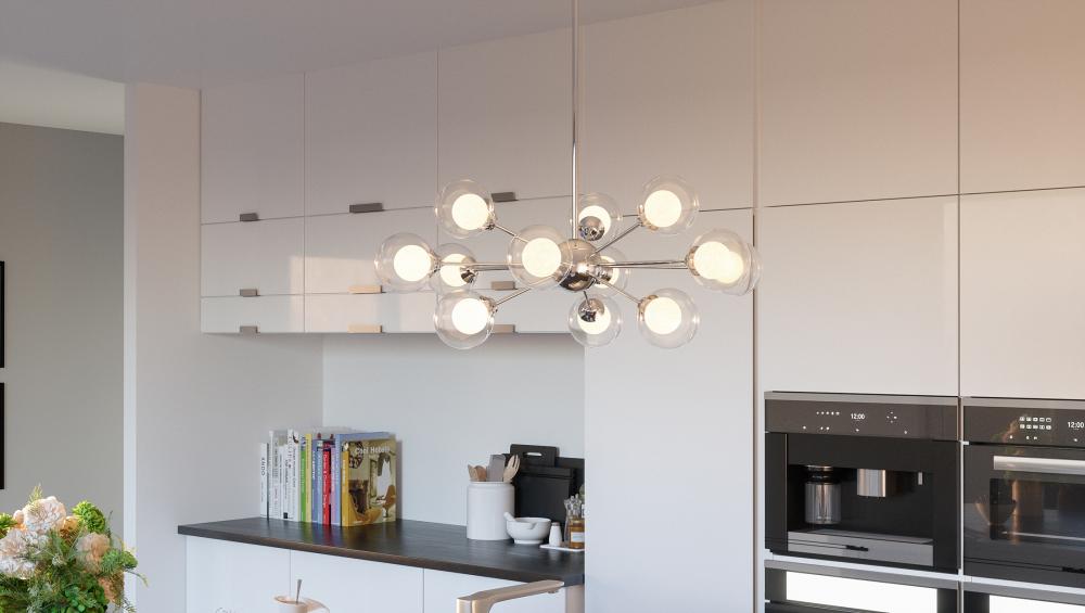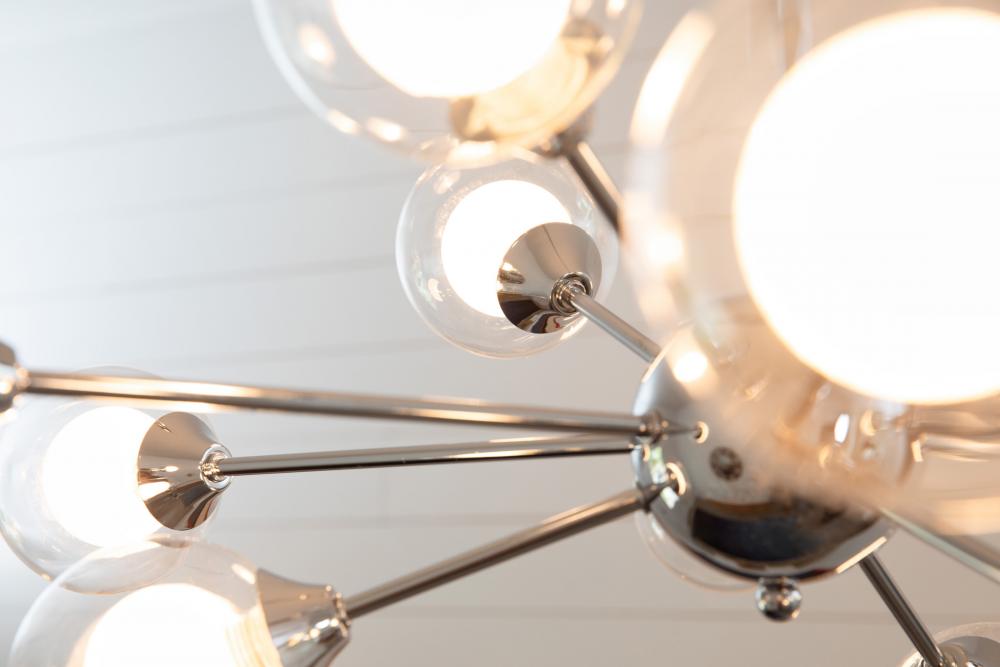 Find yourself mesmerized by the vintage beauty of the Spellbound, a stunning member of Platinum by Quoizel. Inspired by the sputnik designs of decades past, this collection is truly retro reimagined. Spheres of shimmering ice glass are encased in outer sha