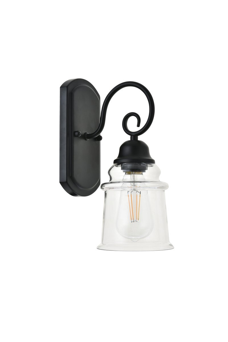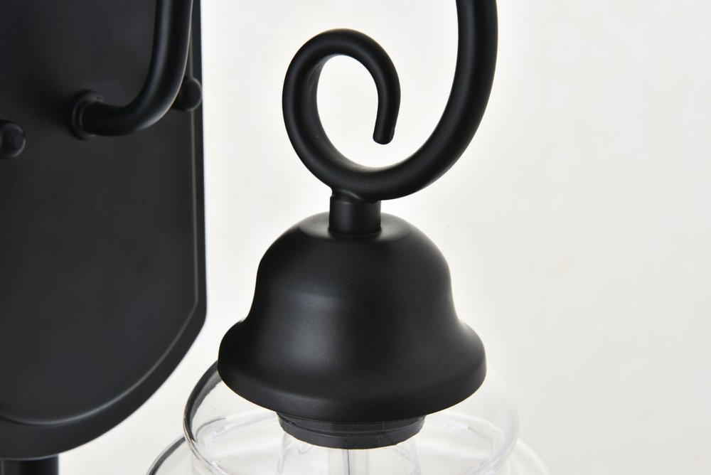 Illuminate your space and create a cozy atmosphere with the Spire collection wall lamp. Everything is in its most artistic form--the gentle curves of the backplate, the clear glass lampshade, and the black finish arm that ends in a playful twirl. Whether it lights up the stories read at bedtime in your living room or bedroom, or greets and guides your guests as they enter your beautiful home, this wall lamp will surely please all.