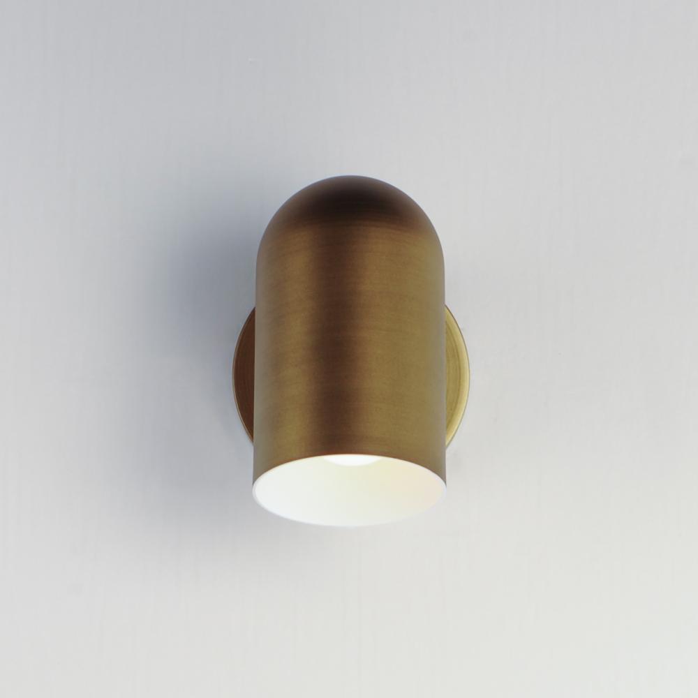 An Articulating Dome or Cylinder mono point Wall Sconce featuring sleek, streamlined design and directional shade that provides focused directed light. Available in Naturally Aged Brass and Matte Black outdoor rated powder coats and constructed of non-corr