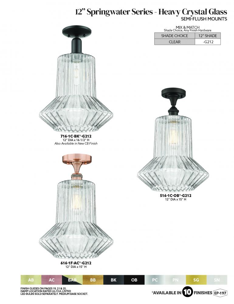 Innovations Lighting 516-1C-SN-G212-LED - Springwater - 1 Light - 12 inch - Brushed Satin Nickel - Semi-Flush Mount