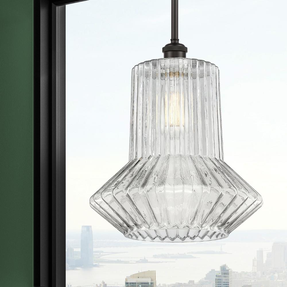 Springwater - 1 Light - 12 inch - Oil Rubbed Bronze - Clear Fluted Shade - Mini Pendant