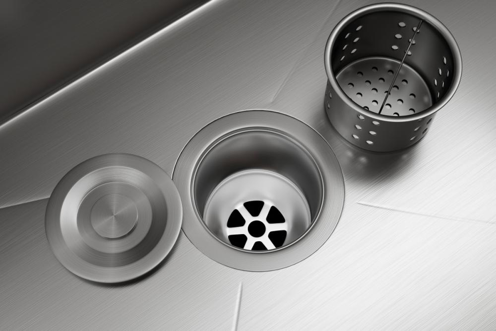 comes with one coordinating stainless steel kitchen basket strainer, mounting hardware kit with screws and clips, and a convenient cut out template
