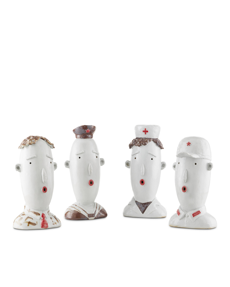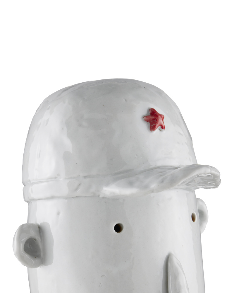 Artist Xiang Yang Hong, a brilliant ceramist, created the Stan the Military Man, a sculpture that illuminates a character drawn from his memories of childhood. Made of porcelain, the face sculpture comes to life with its off-white, brown, and red glazing. The expressive decorative accessory illustrates the inspiration the artist finds in the faces of people.