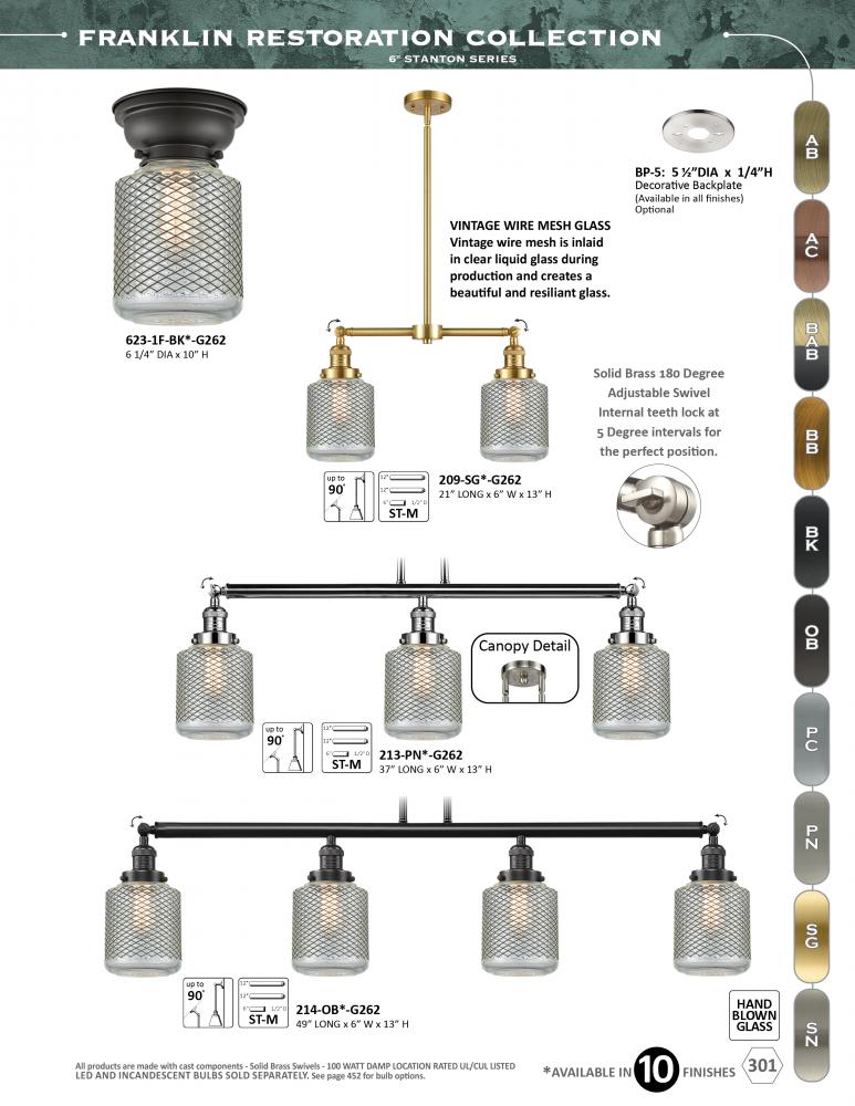 The Franklin Restoration collection is comprised of heavy cast components that give the fixture a heavy Industrial look and feel. We offer the fixture in 10 finishes with a Bare Bulb look or with over 100 possible metal and glass shade options that can cha